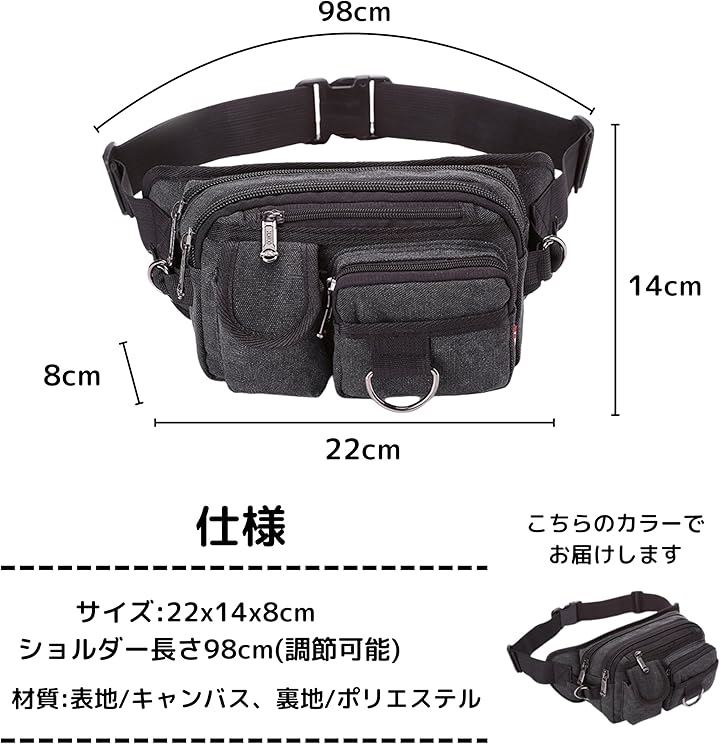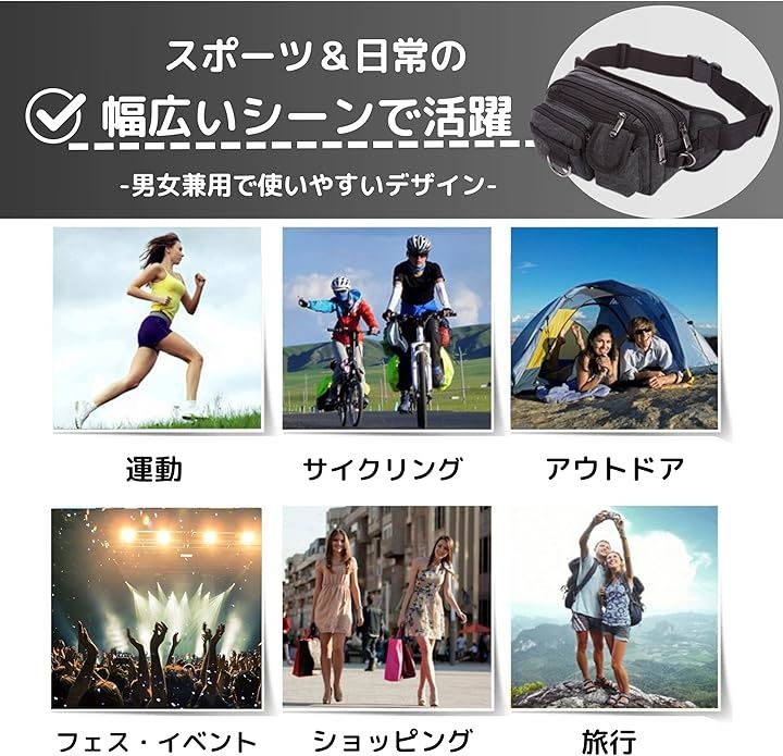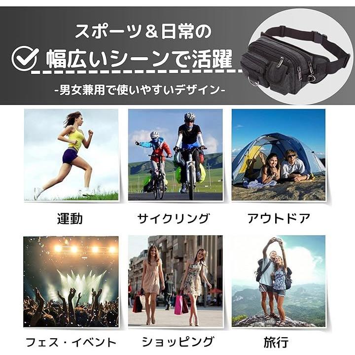 ウエストバッグ ウエストポーチ 盗難防止 7ポケット 大容量 黒 ランニング ウォーキング サイクリング アウトドア