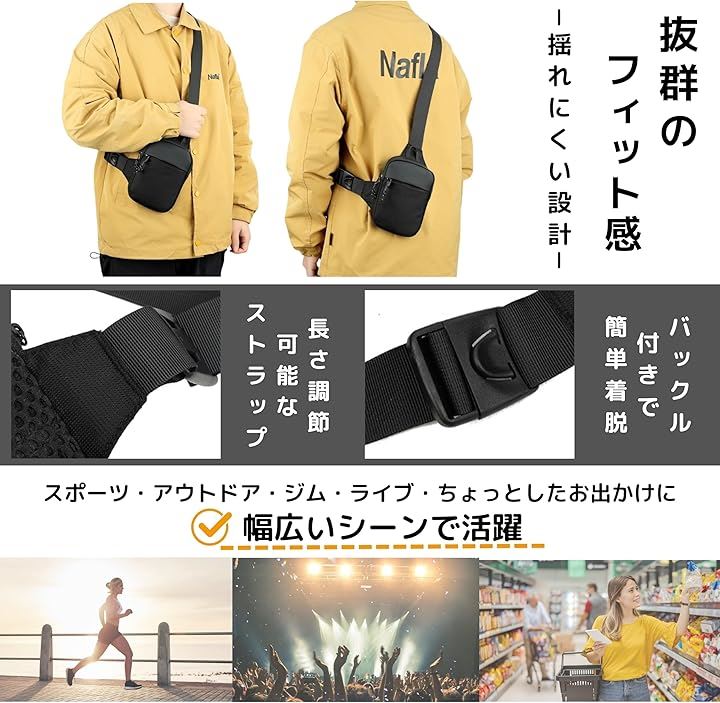 ランニングポーチ ショルダーバッグ 斜めがけバッグ メンズ スマホ 収納 2ポケット