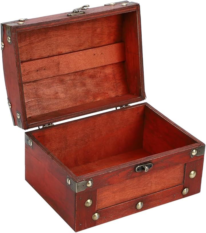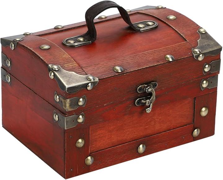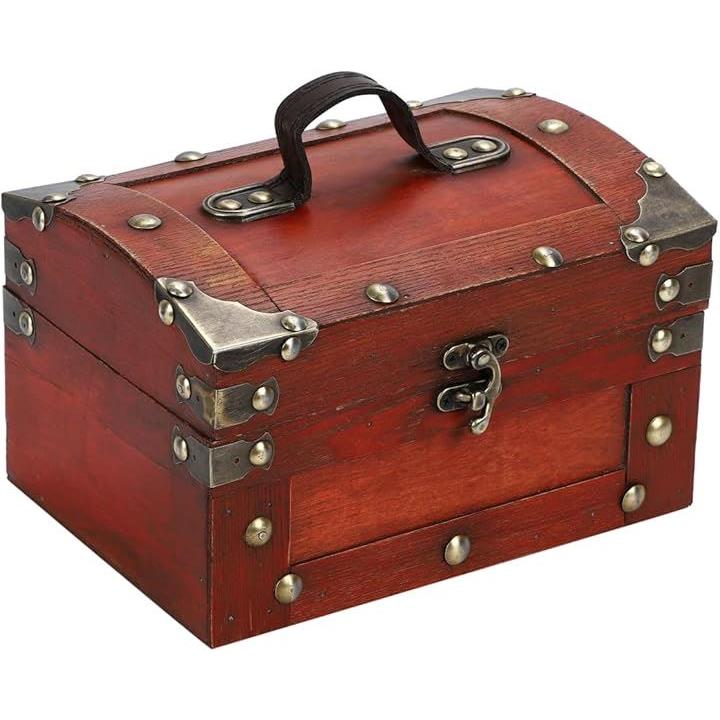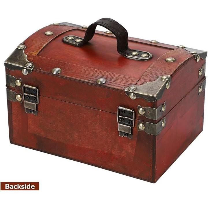 レトロ 宝箱 アンティーク 木箱 収納 ボックス ドーム型 リベット 装飾