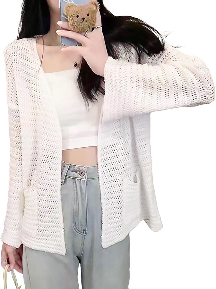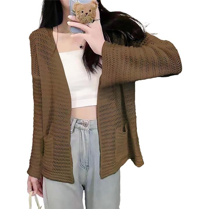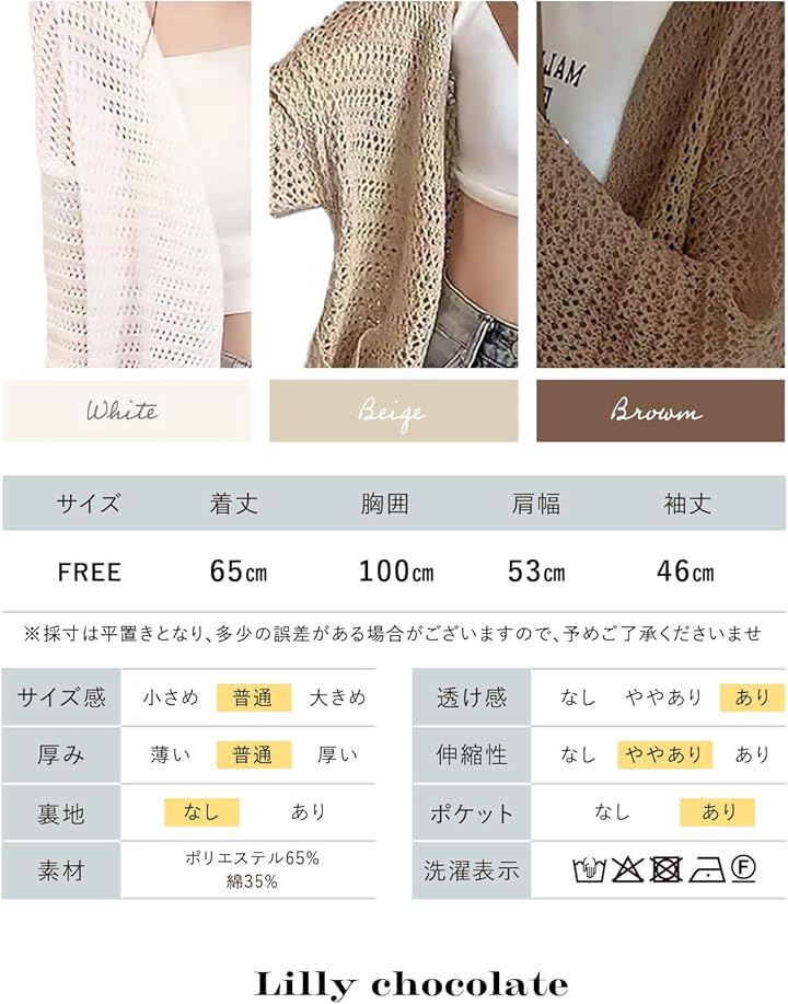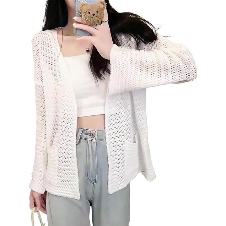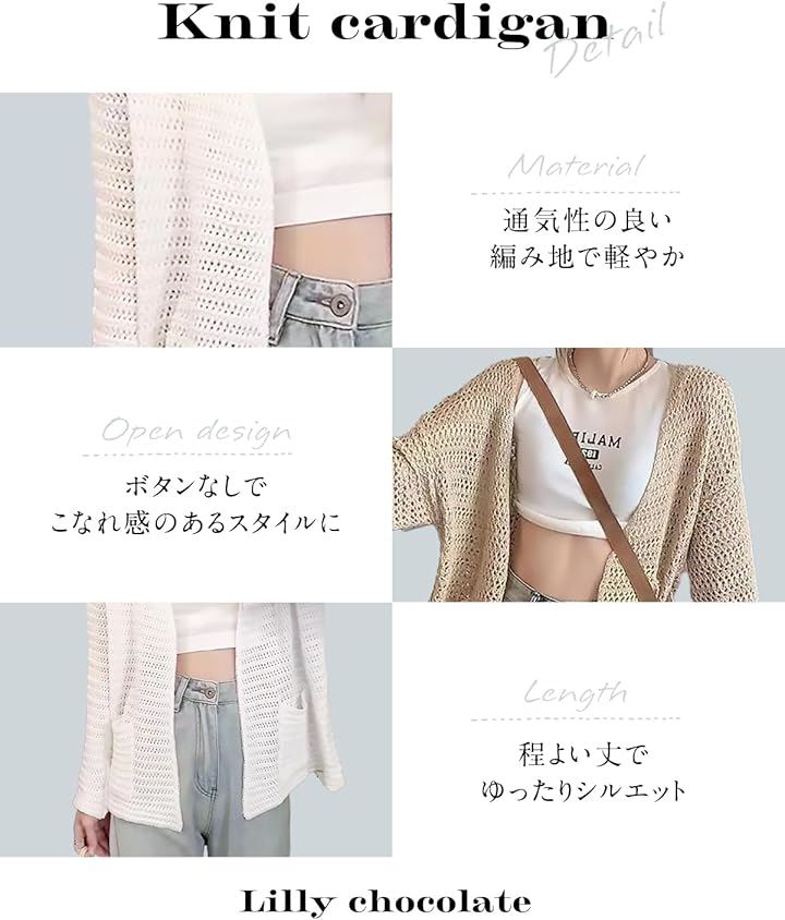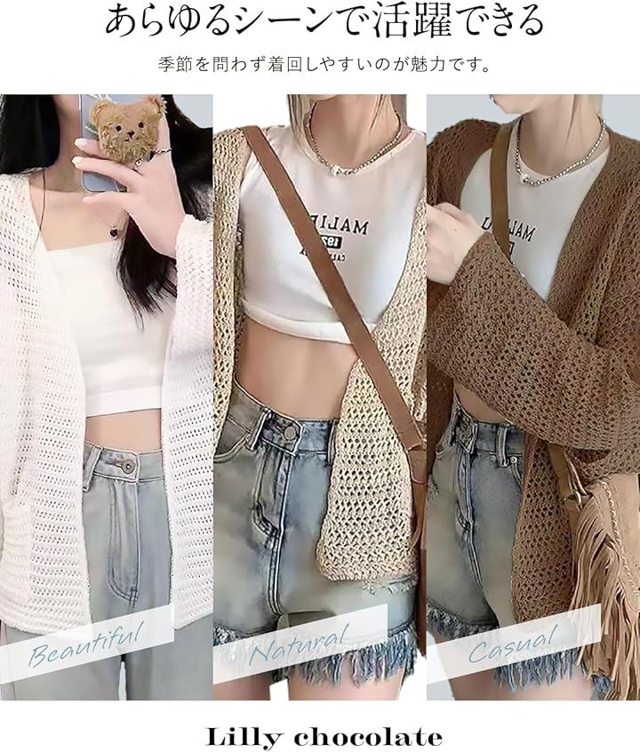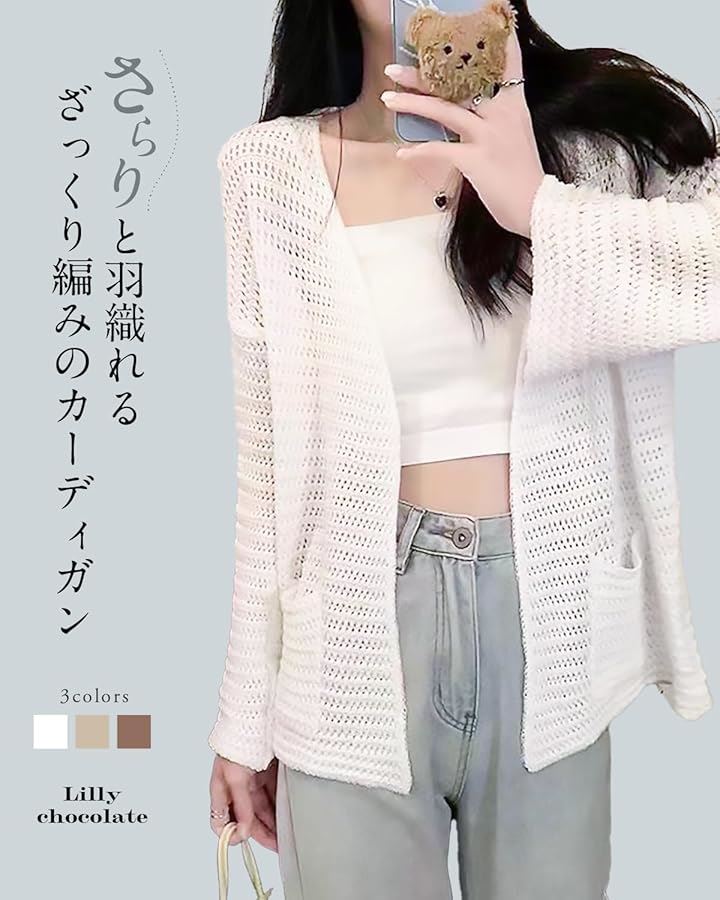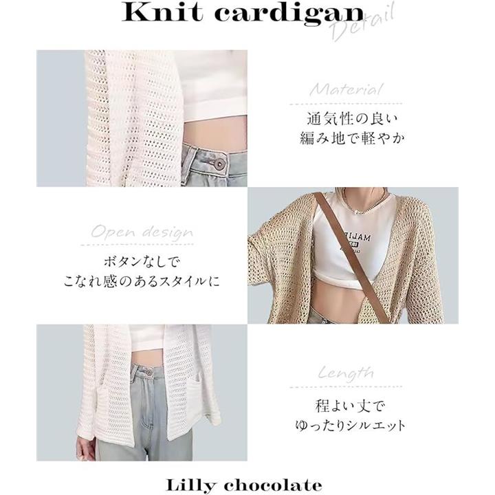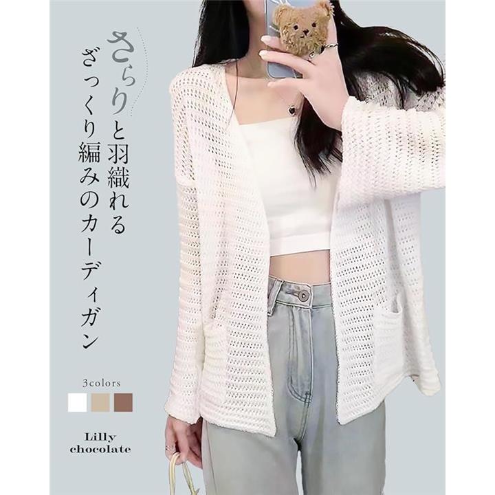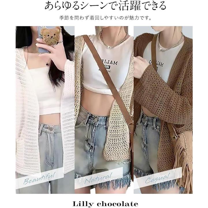 ざっくりカーディガン レディース 春 夏 秋 春夏 透かし編み 鍵編み サマーカーディガン 薄手 軽い 羽織り シンプル カジュアル 冷房対策 リゾートコーデ 水着の上 羽織れる ビーチウェア