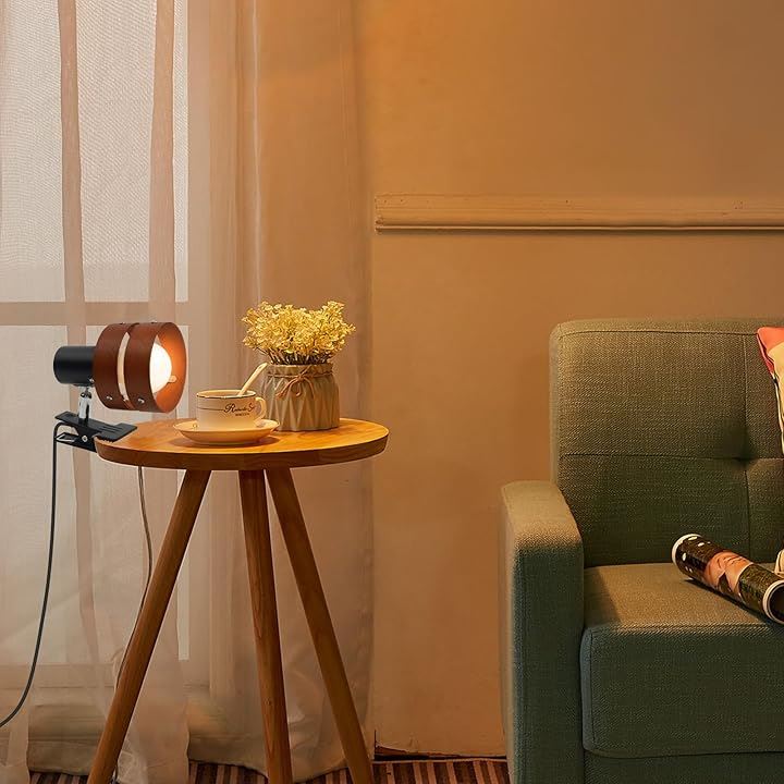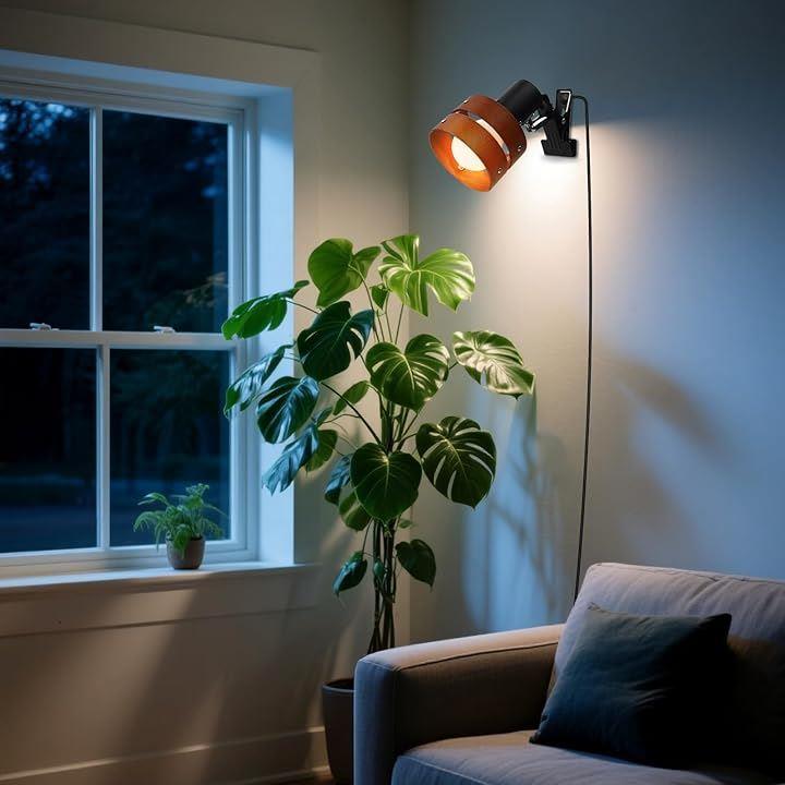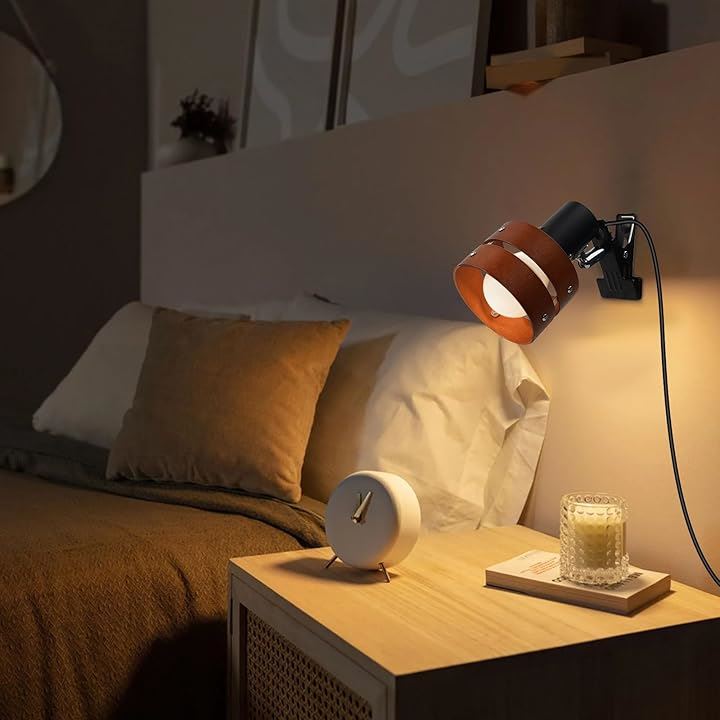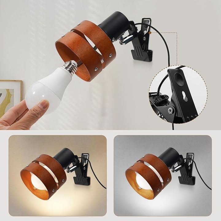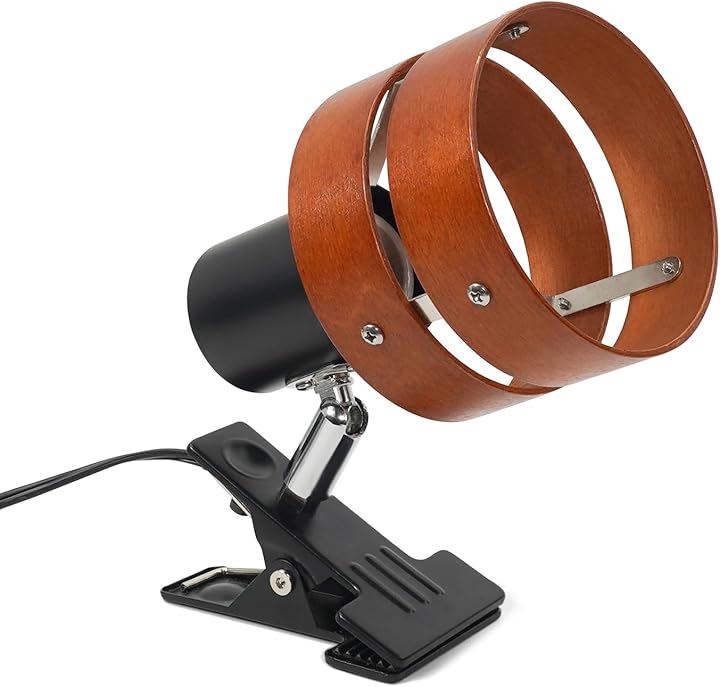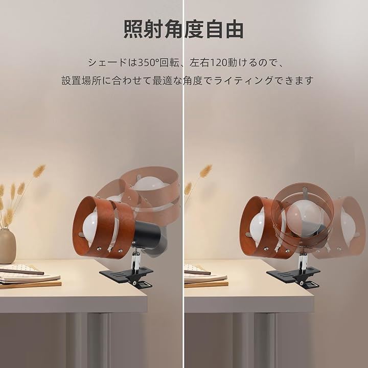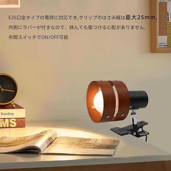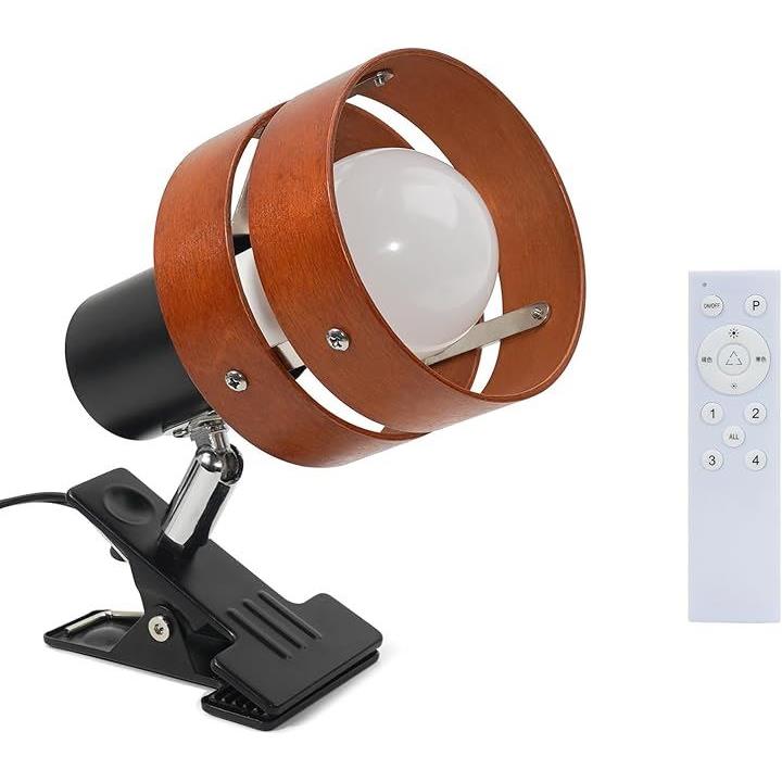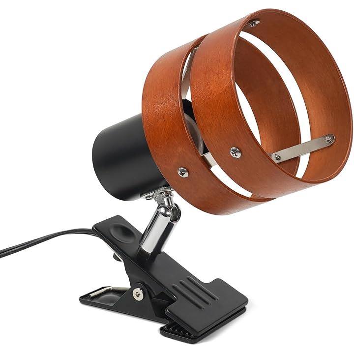 クリップライト 茶色の木製の円 E26対応 360度回転 スイッチ付き 高級 目に優しい 節電 省スペース設計 寝室 ベッドサイド デスクライト 読書用 高級レストラン照明 植物育成ライト対応