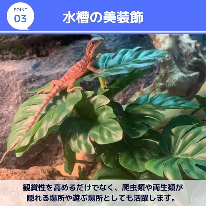 ビバリウム 人工植物 モンステラ 爬虫類 水槽 葉 両生類 フェイク 水草 装飾 ペット用品