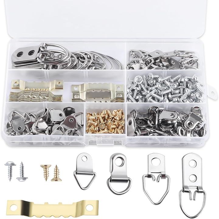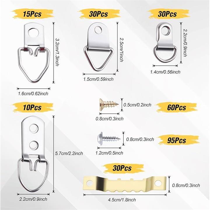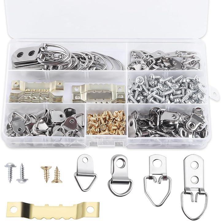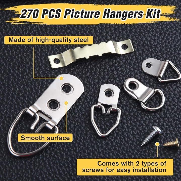 額縁フック セット 270本セット ティースハンガー 釘 金具 三角カン D型吊カン 両面鋸歯吊り 絵画用壁掛けフック ピクチャーハンギングキット ネジ付き