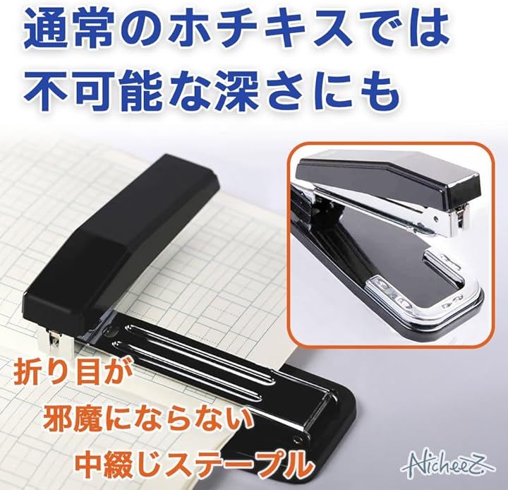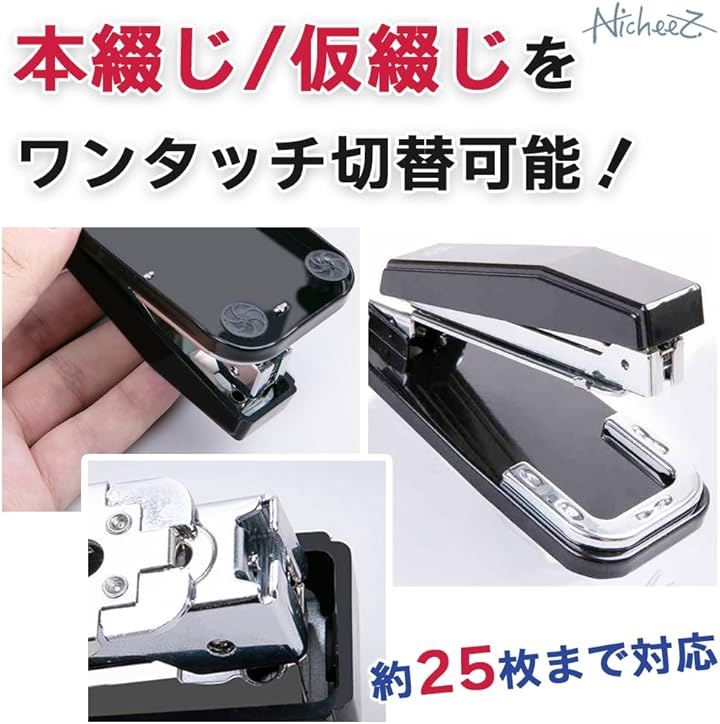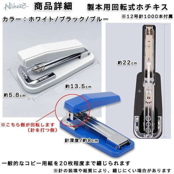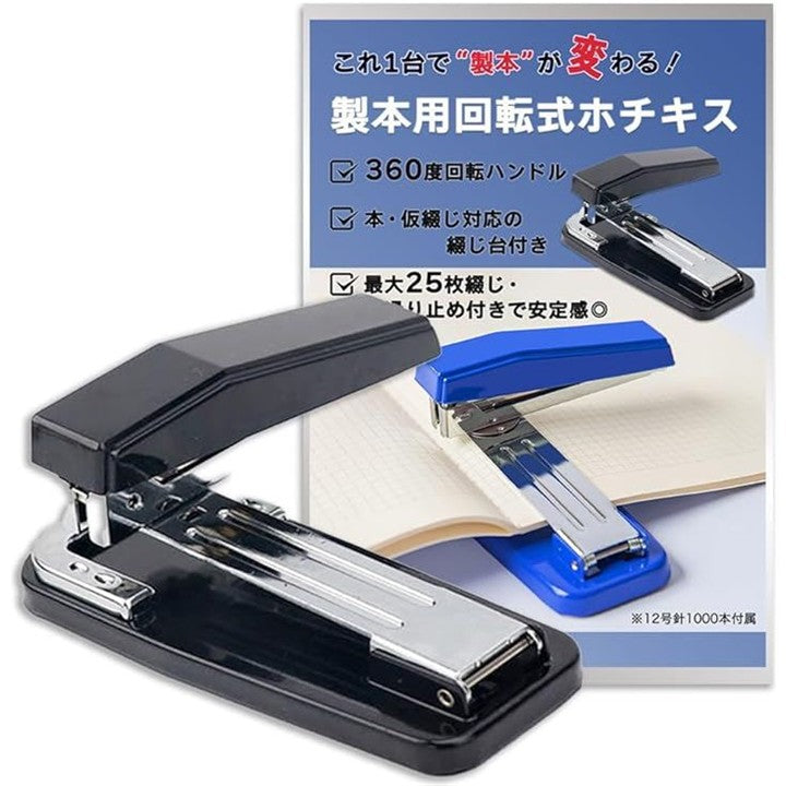 中綴じ用 ホチキス 製本ステープラー 回転式 中型 25枚綴 軽量 ホチキス針1000本付