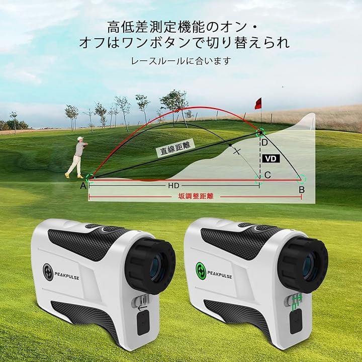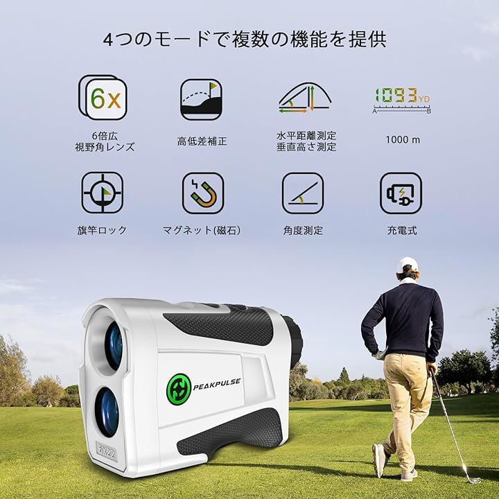 ゴルフ 距離計 1000m/1093yd対応 ゴルフ レーザー距離計 コンパクト マグネット 距離測定器 高透過レンズ 6倍望遠 ピンロック振動機能 スロープモード 計測器 充電式 IP54 防塵防水 専用ケース付き |