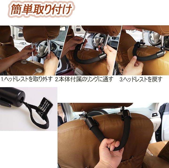 アシストグリップ 手すり 乗り降り補助 サポート 介護 妊婦 お年寄り フック付き 2個セット