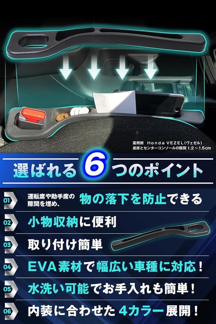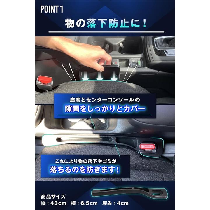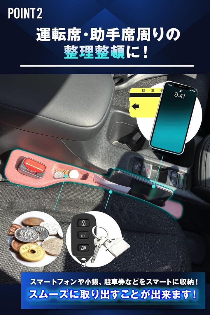 車 隙間埋めクッション 収納 便利 幅広い車種に対応 2本入り 落下防止 取り付け簡単 センターコンソール