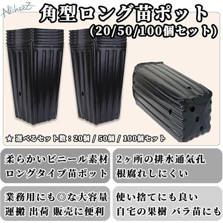 育苗ポット ロング 深型 ビニールポット プランター 角形 プラスチック 栽培 大容量