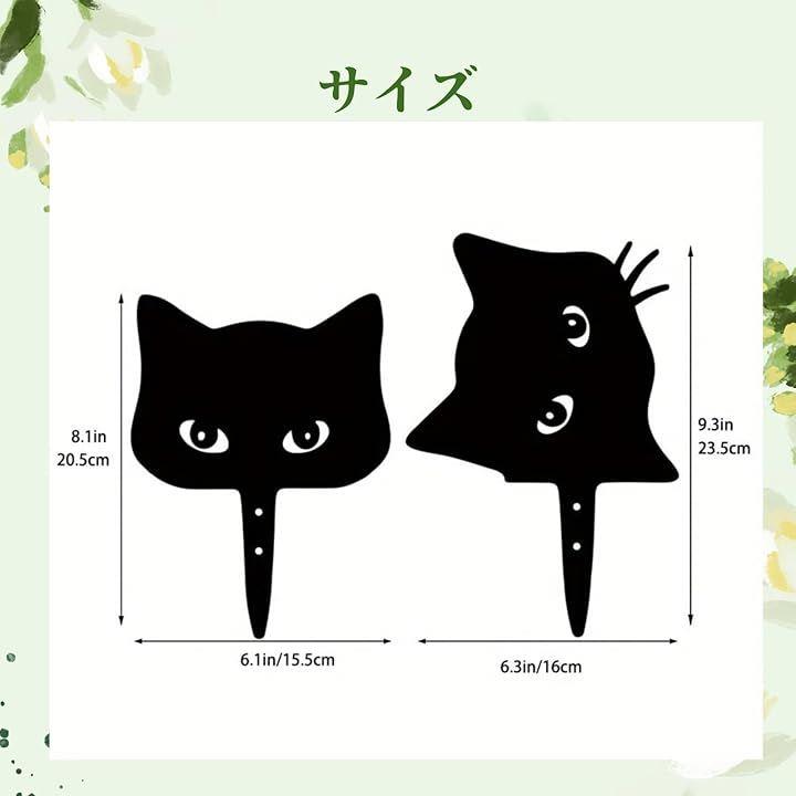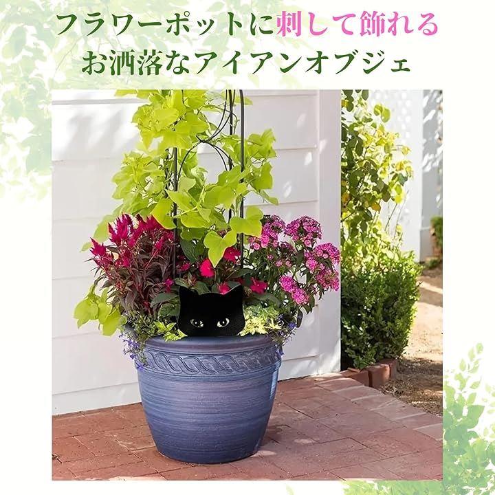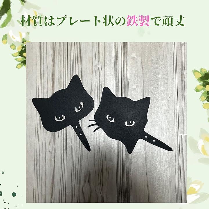 猫 黒猫 オブジェ ネコ ガーデンオーナメント ラティス フェンス トレリス 園芸 ガーデニング アイアンオブジェ ウェルカムプレート装飾 2枚組