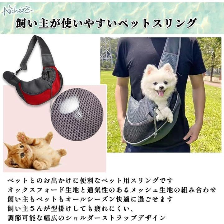 ペットスリング ソフトクレート メッシュ 飛び出し防止 抱っこ紐 小型犬 猫 ショルダー キャリア ストラップ付 調節可能