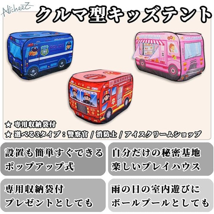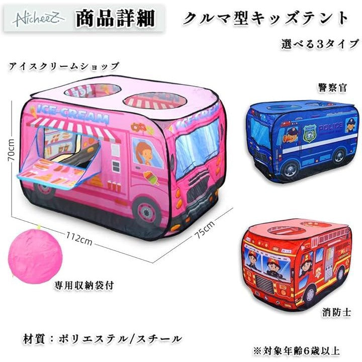 キッズテント 子供用テント 乗り物 クルマ型 秘密基地 屋内遊具 ポールプール ワンタッチ 折りたたみ式 専用収納袋付