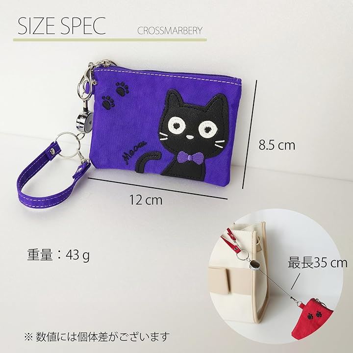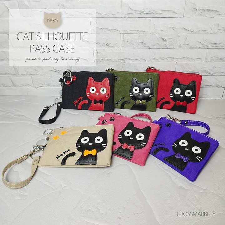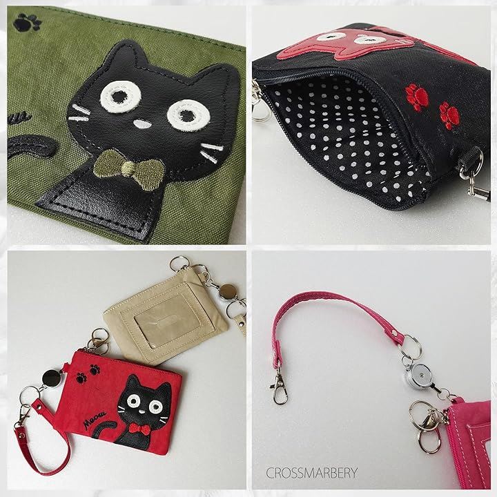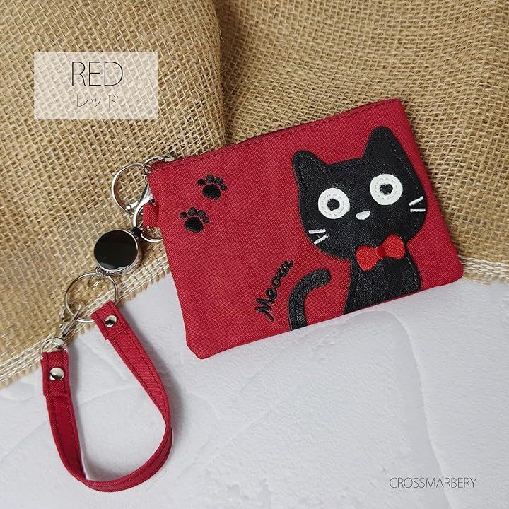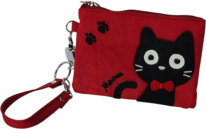 パスケース 猫 リール付き 小銭入れ 赤 横 財布 ファスナー付き レディース 可愛い 定期入れ かわいい コインケース フラグメントケース 首掛け 通勤 通学 ST04