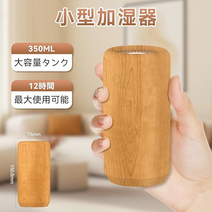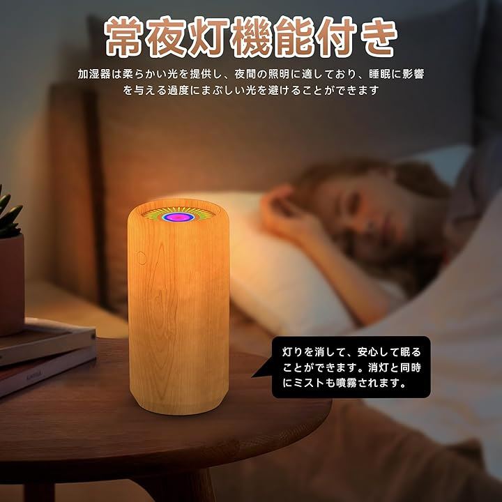 「加湿器・木目調・一台多役」加湿器 小型 卓上 アロマディフューザー 小型 卓上 除菌 アロマ対応 LEDライト 超音波加湿器 静音 卓上加湿器 自動停止機能 空焚き防止 持ち運び便利 6-9畳対応 |