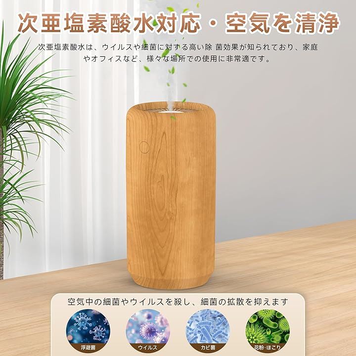 卓上加湿器は次亜塩素酸水に対応しており、除菌効果を発揮します。