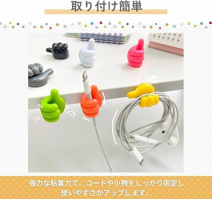 コードホルダー フック 歯ブラシスタンド ケーブル収納 5色10個セット