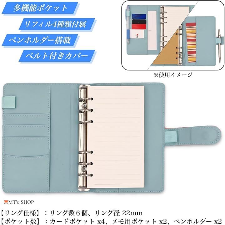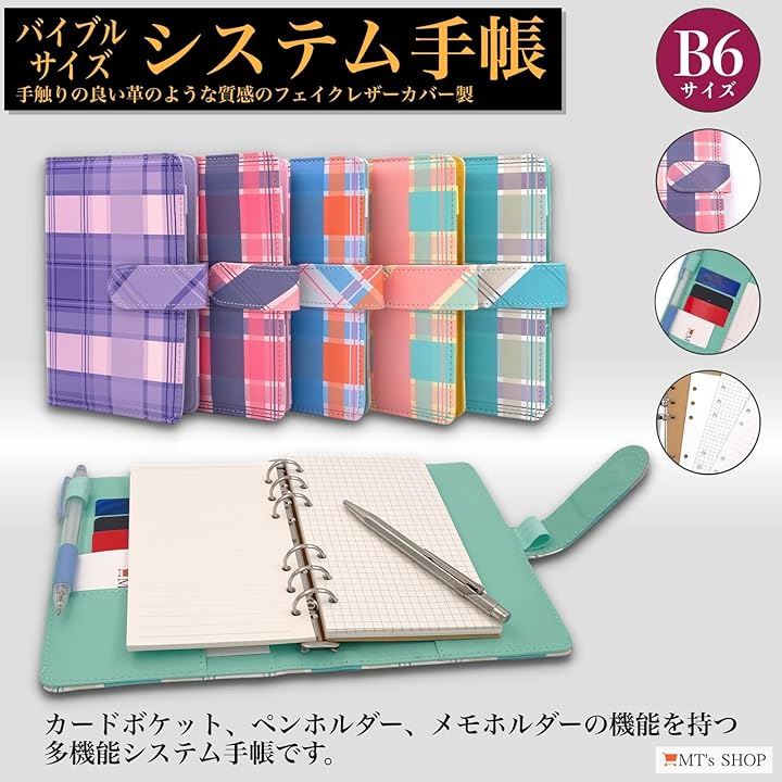 システム手帳 B6サイズ チェック柄 6穴リング 4種類 リフィル付属 ポケット ペンホルダー搭載 OF410
