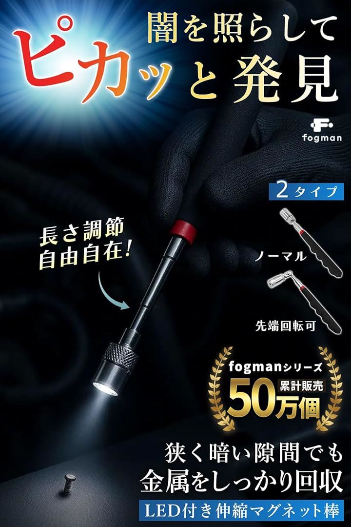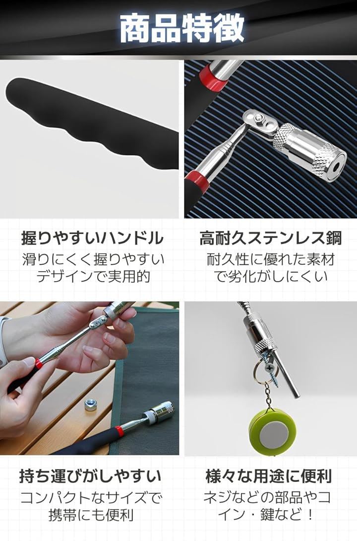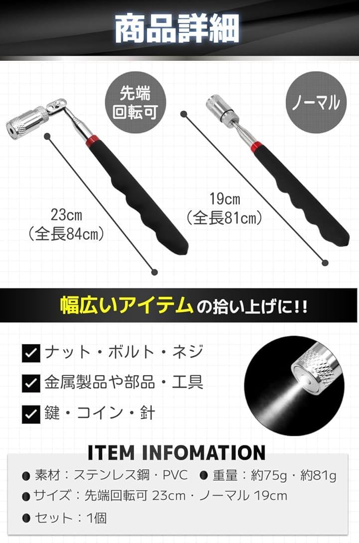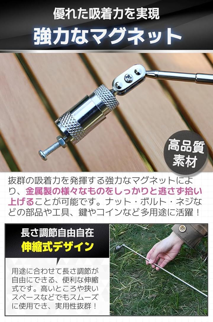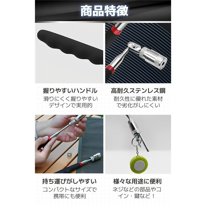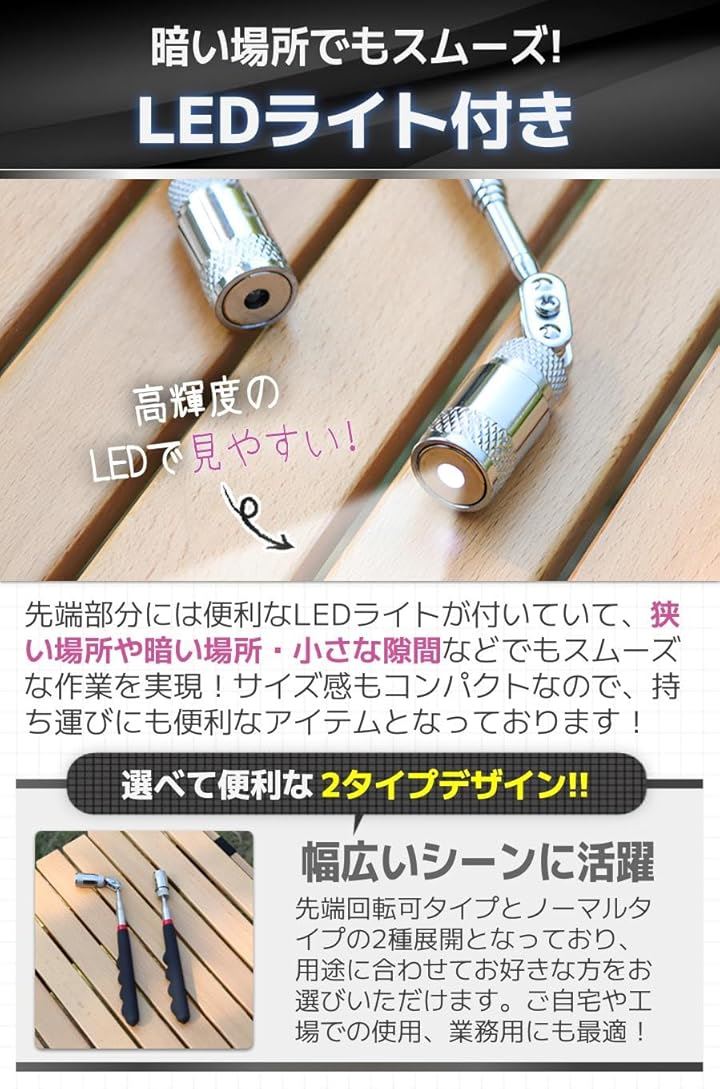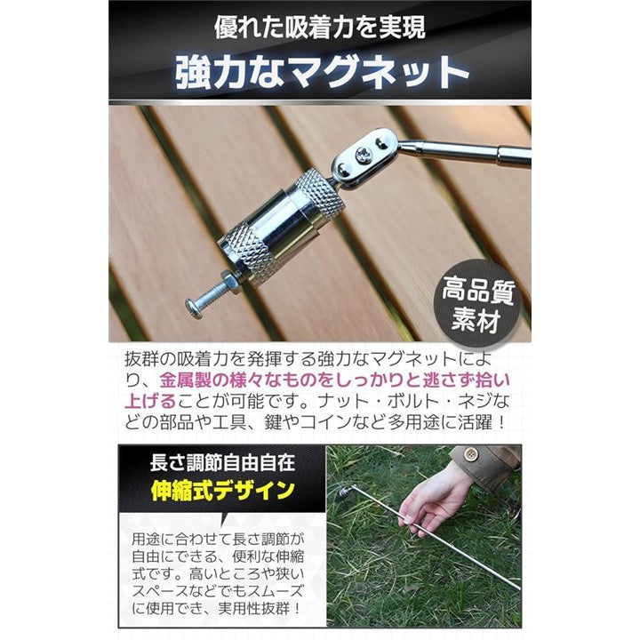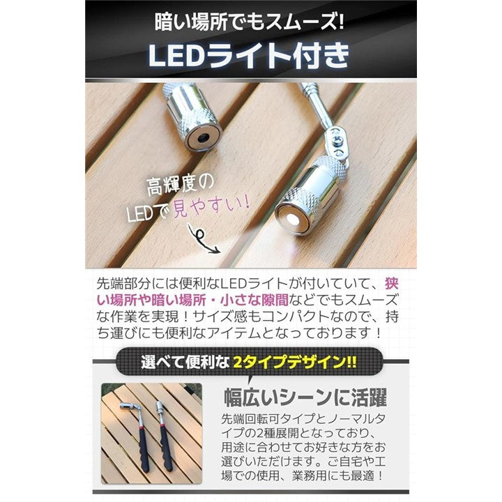 磁石 棒 マグネット ピックアップツール マグネットキャッチャー 工具 伸縮 LED付