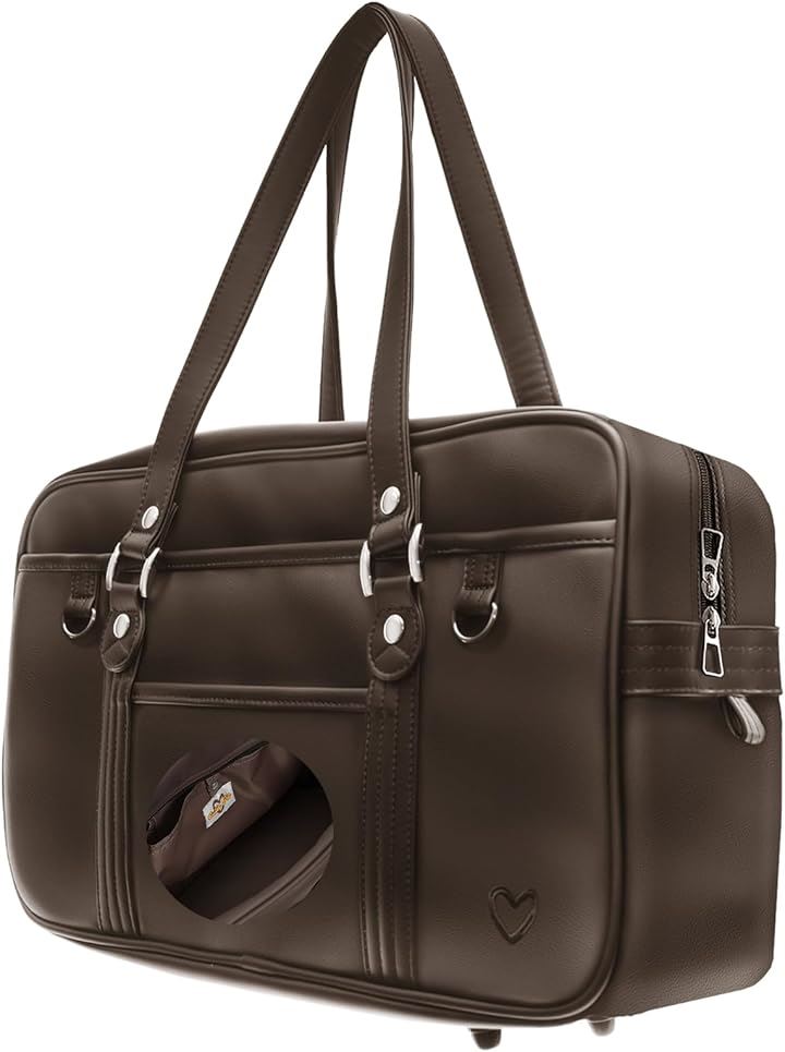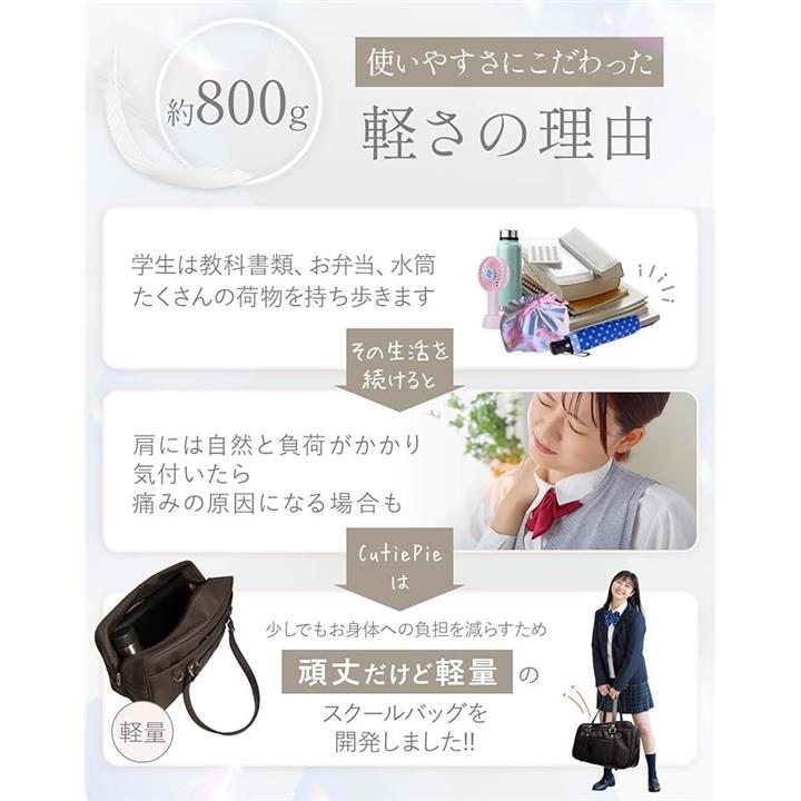 [Cutie Pie] キューティパイ スクバ スクールバッグ 茶色 合皮 合皮 高耐久 丈夫 軽い かわいい 持ち手長い 女子高生 |
