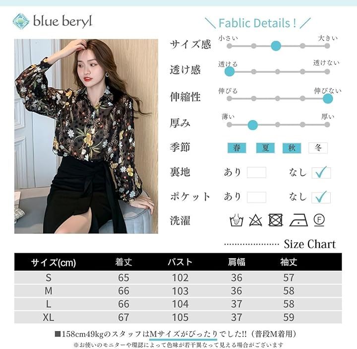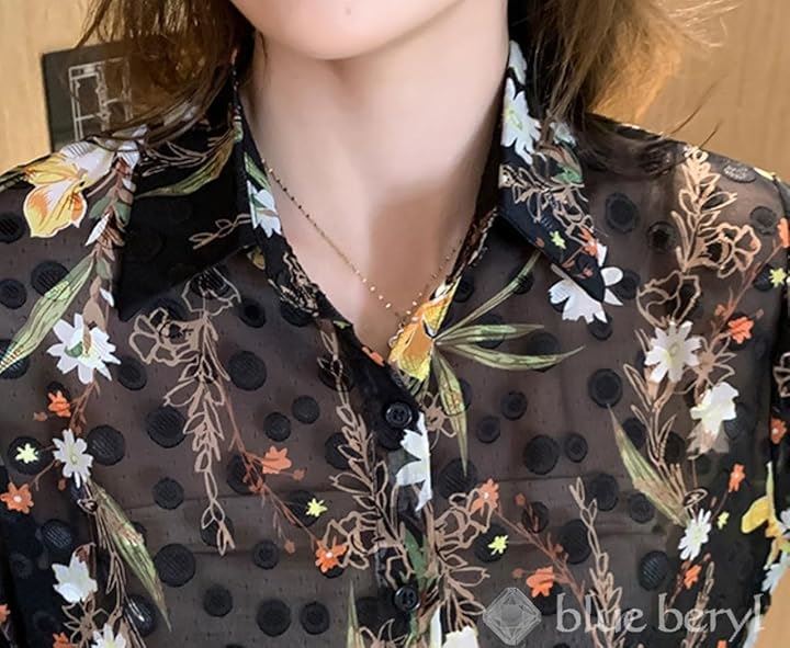 シフォンブラウス レディース フラワープリント ドット柄 パフスリーブ 長袖 シアー スタンダードカラー ゆったり おしゃれブラウス 大人女子 薄手 オシャレブラウス 裏地なし カッコイイ BB068