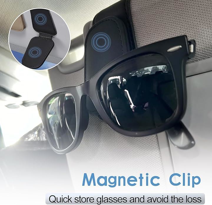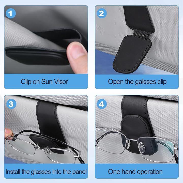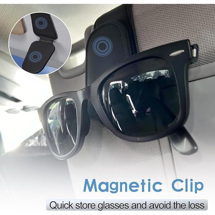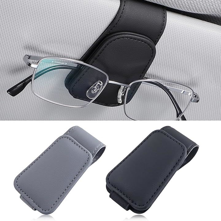 2個セット 車 サングラスホルダー 眼鏡ホルダー 車用サングラスクリップ メガネホルダー サンバイザーポケット 車用収納 眼鏡を守ります レザー調 取り付け簡単 サンバイザー取り付 カー用品 車載収納用