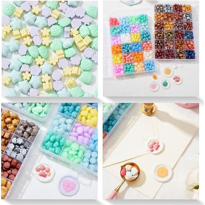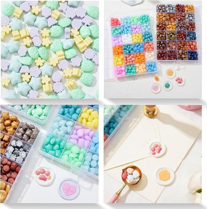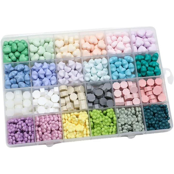 4種ミックス 24色 約267g シーリングワックス 花型 星型 おばけシーリングスタンプ 封蝋 手紙 レター 結婚式 招待状