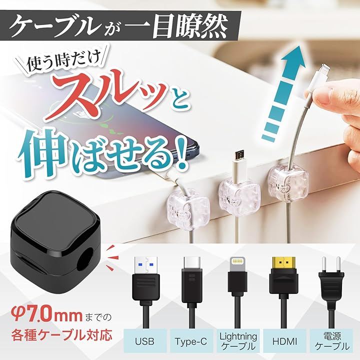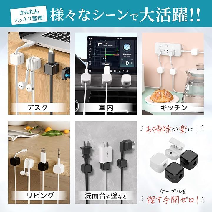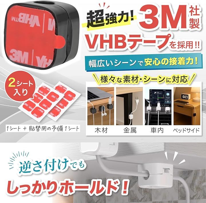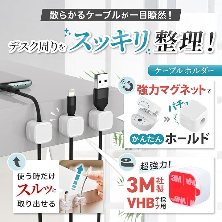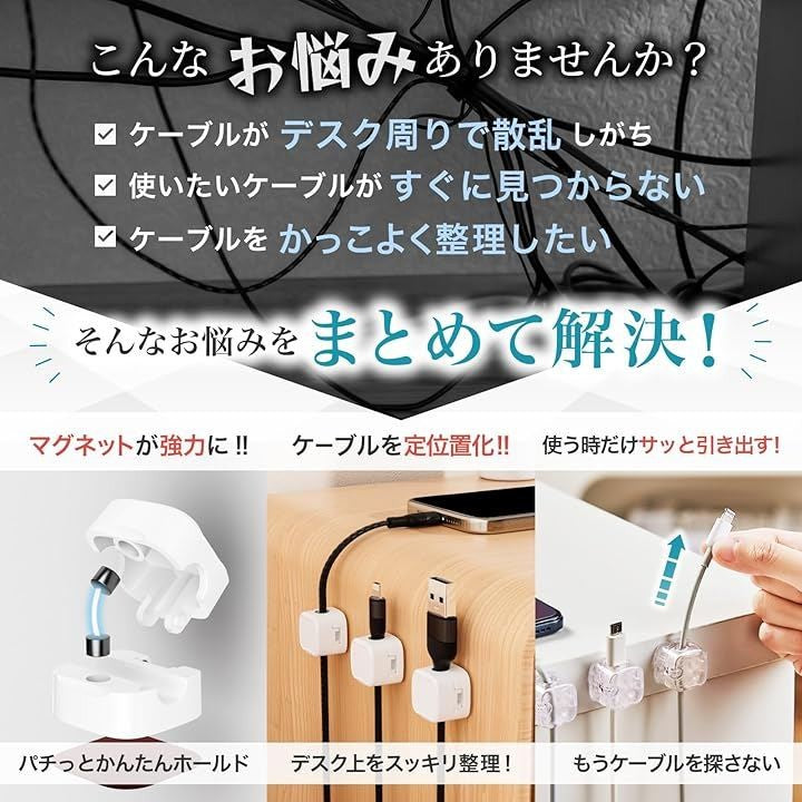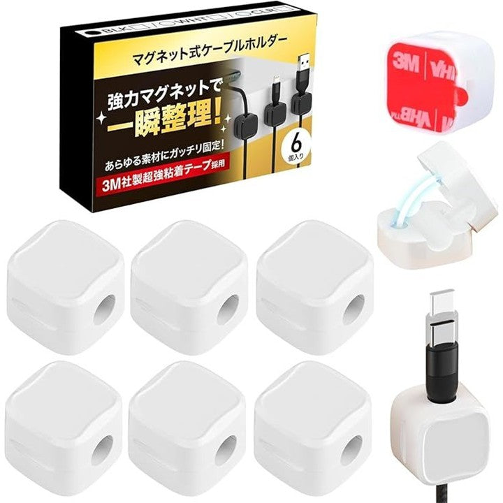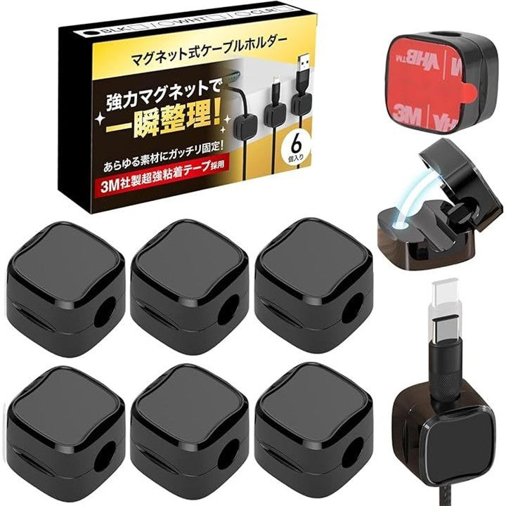 日本企業企画ケーブルクリップ マグネット開閉式 3Mテープ 配線止め ケーブルホルダー 6個入り 社内整理 デスク周り 固定 配線管理 3M社製超強力テープ採用