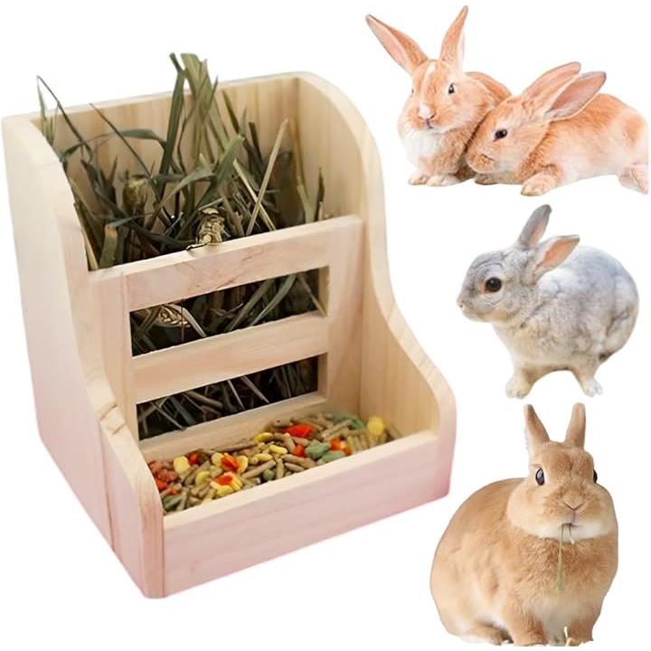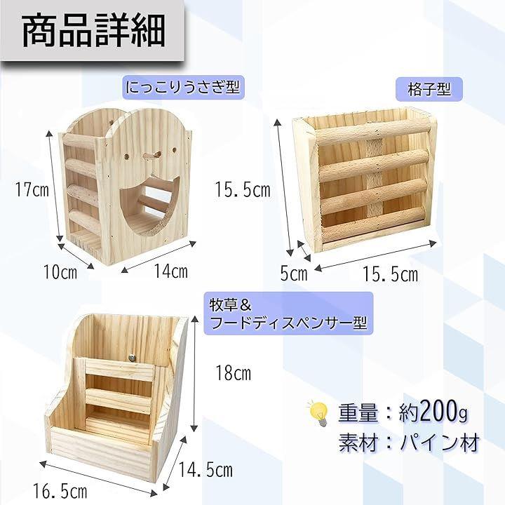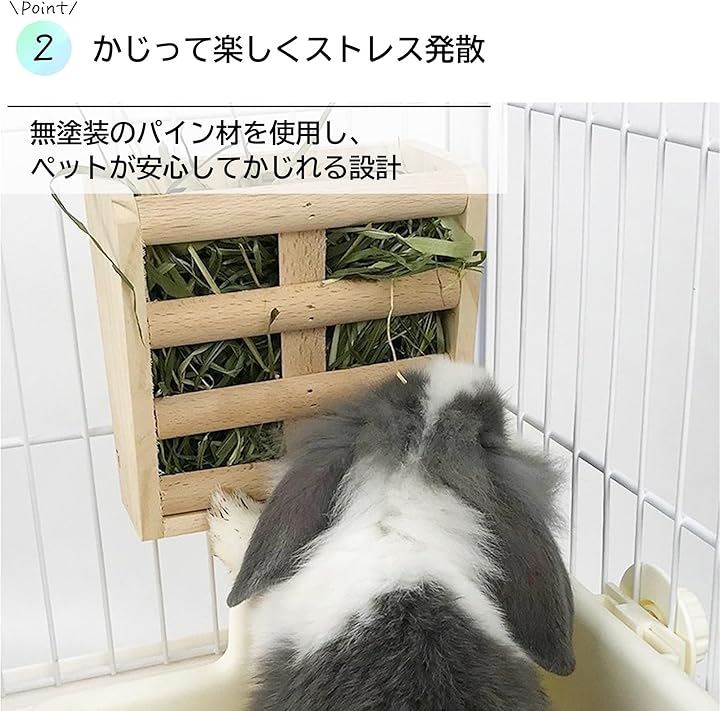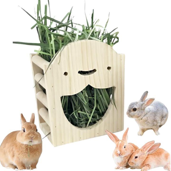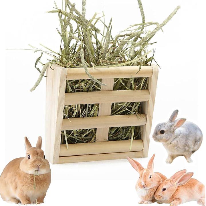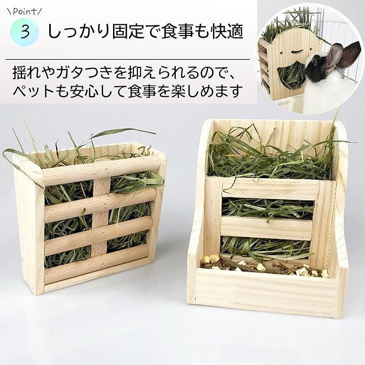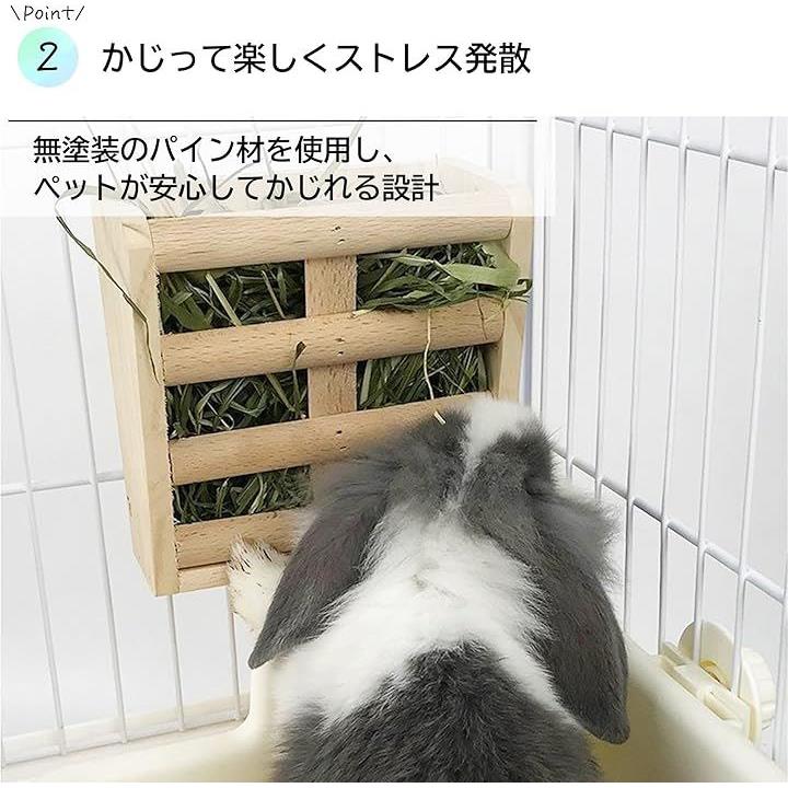 うさぎ 牧草入れ チモシーラック 干し草フィーダー 木製 ケージ固定 小動物用 モルモット チンチラ エサ入れ かじり木 飼育用品 乾燥草入れ 干し草ラック