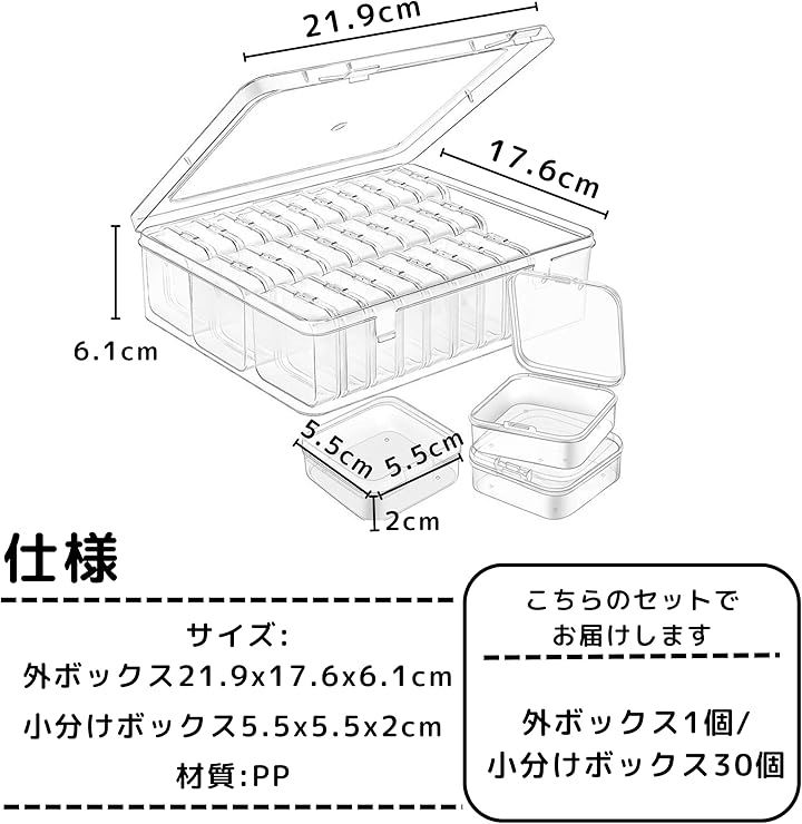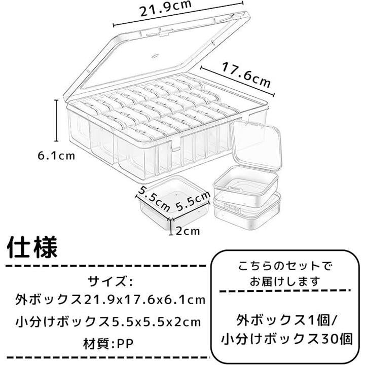 ビーズケース ネイル ネジ ピアス 小物 収納 パーツケース 小分け キャビネット 透明 小分け容器 30個入り