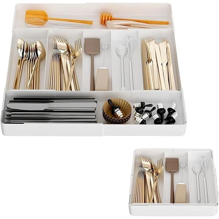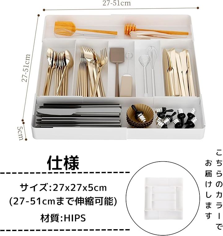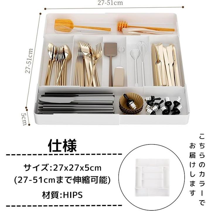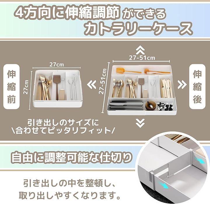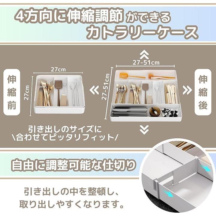 カトラリーケース 伸縮 4面 収納 トレー デスクトレー 引き出し 仕切り 収納ケース 小物入れ キッチン 文房具 整理 27~51x27~51cm
