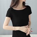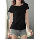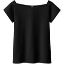 T シャツ フレンチ スリーブ ボート ネック ウエスト シェイプ 無地 レディース 女性 用 半袖 シンプル ソリッド ストレッチ 伸縮性 Tシャツ ボートネック ティーシャツ