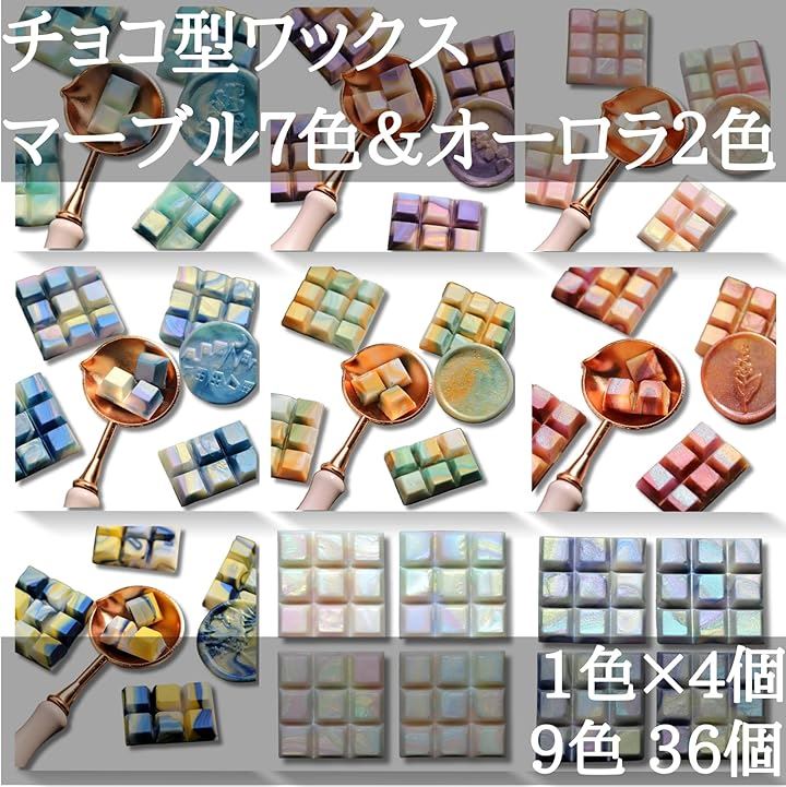 9色 36個 シーリングワックス チョコ型 マーブル オーロラシーリングスタンプ 封蝋 手紙 レター 結婚式 招待状