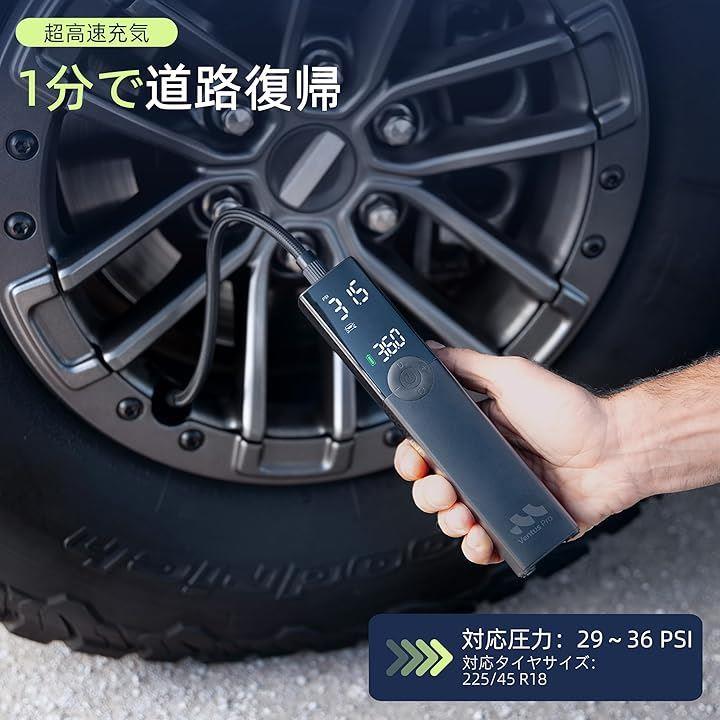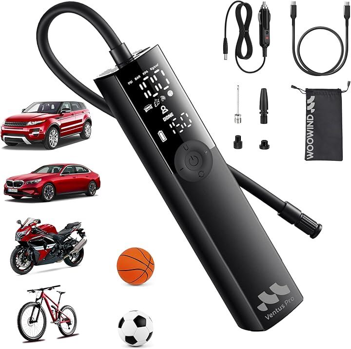 迅速で強力かつ信頼性の高いタイヤエアポンプが必要ですか?Woowind Ventus Proは、車、バイク、SUV、自転車のタイヤをわずか1分で膨らませるポータブルエアコンプレッサーです。路上でタイヤの空気が少なくなった場合でも、アドベンチャーに備える際でも、このエアポンプがあれば安心です。