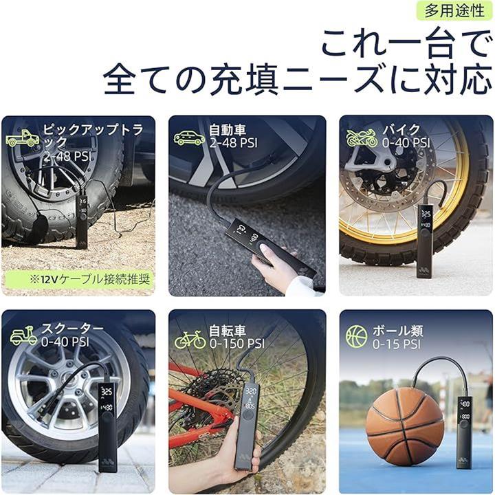 「多用途 & 携帯性」このコンプレッサーは、車、バイク、自転車、ボール、カスタマイズの5種類の充填モードを提供します。