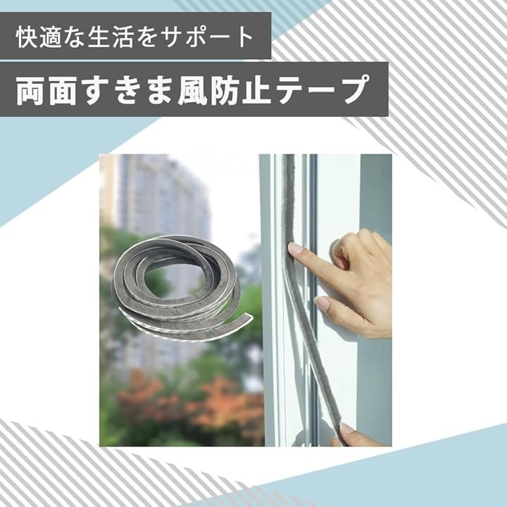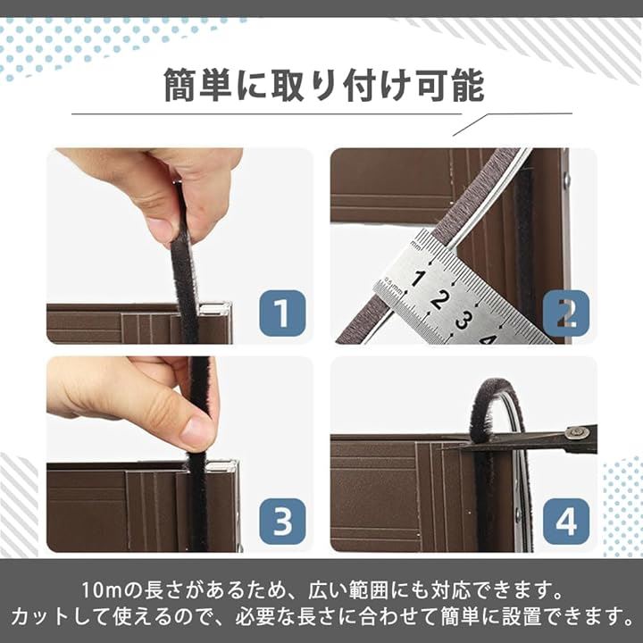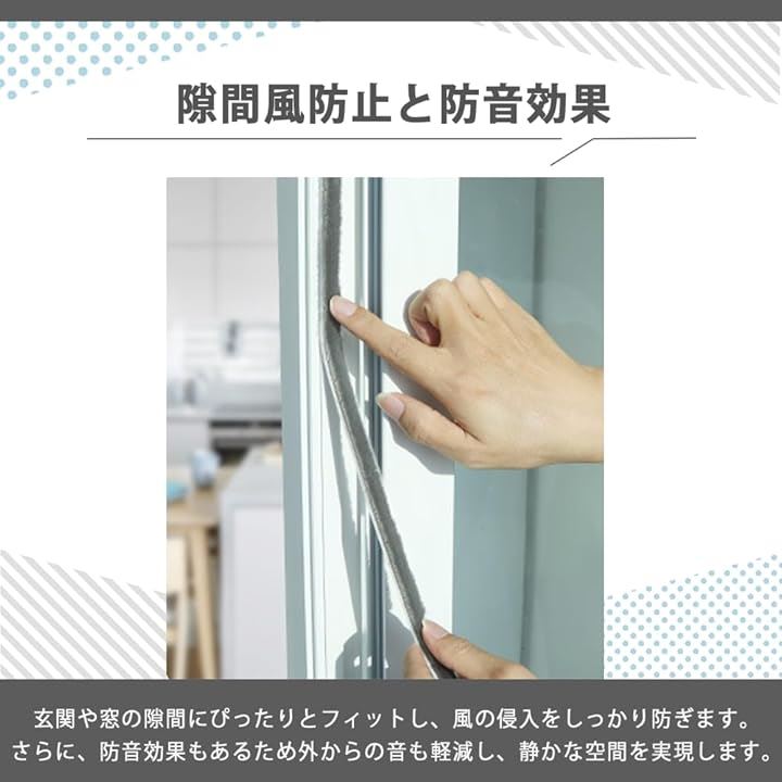 すきま風防止テープ 玄関 ドア 窓用 虫よけ 隙間テープ 防音 パッキン 10m
