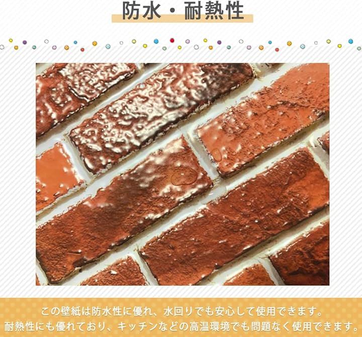レンガ 壁紙 DIY レンガ調 おしゃれ 洗面所 キッチン トイレ 防水 耐熱 10枚セット
