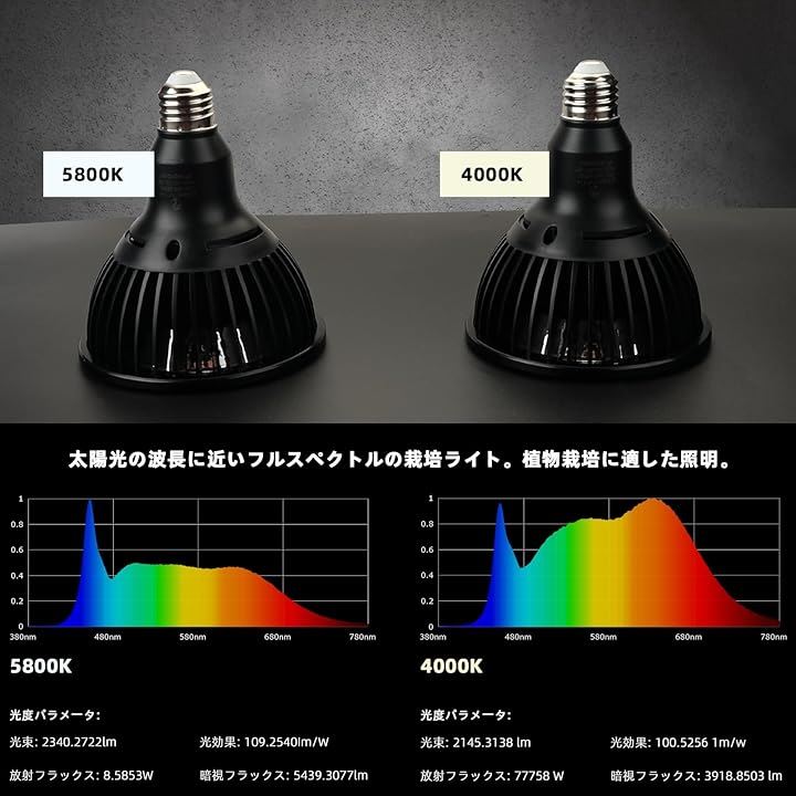 植物育成ライト E26 ランプ口 24Wスポットライト フルスペクトル 高演色性 LED育成電球 ビーム角38度