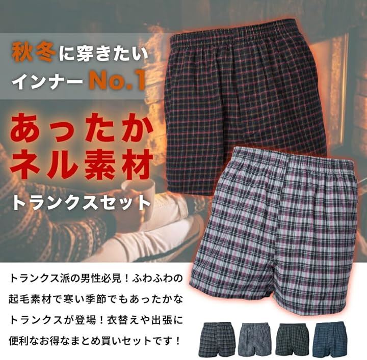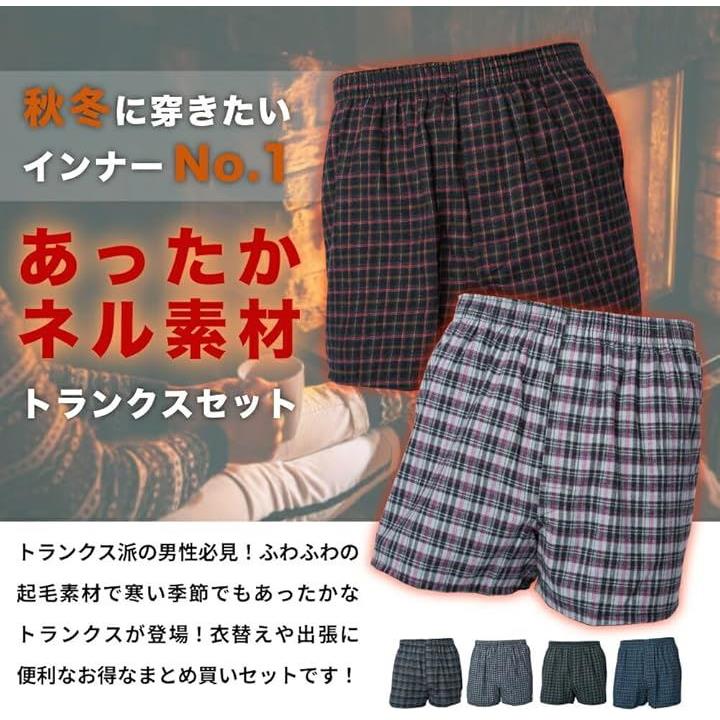 ネル素材 トランクス メンズ 起毛 あったか 保湿 前開き ランダムセット 下着 パンツ インナー フランネル 防寒 柔軟性 弾力性
