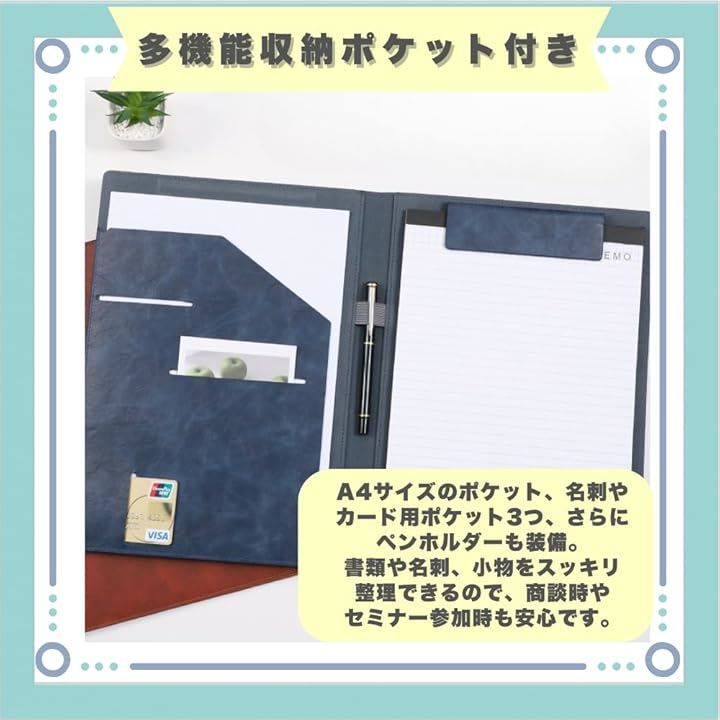バインダー クリップボード A4 2つ折り クリップファイル 多機能 レザー