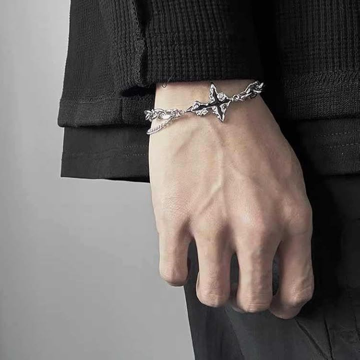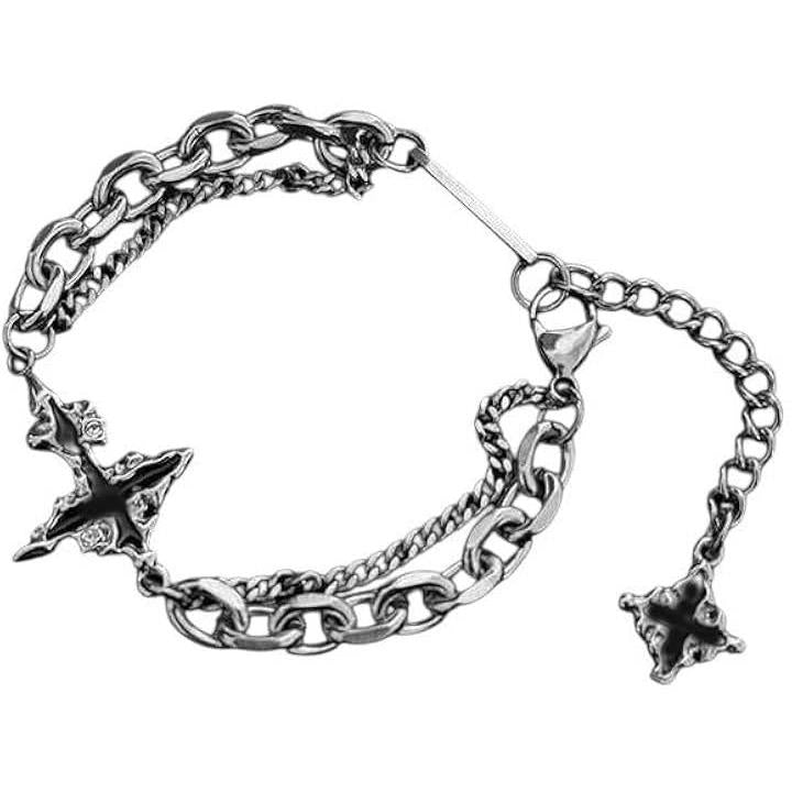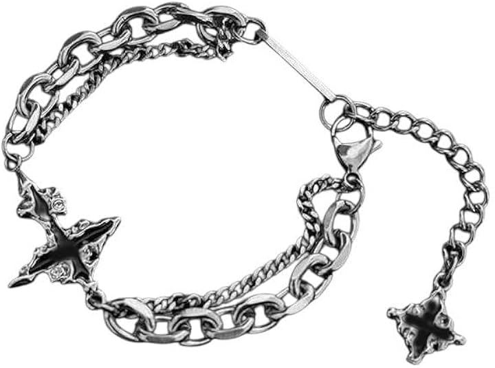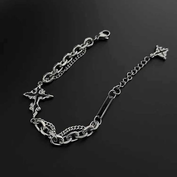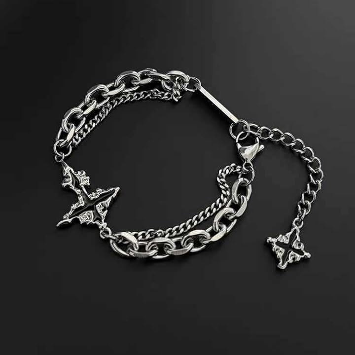 ブレスレット メンズ 十字架 クロス ブラック 二連 重ね付け チェーン 鎖 高見え 男性 アクセサリー