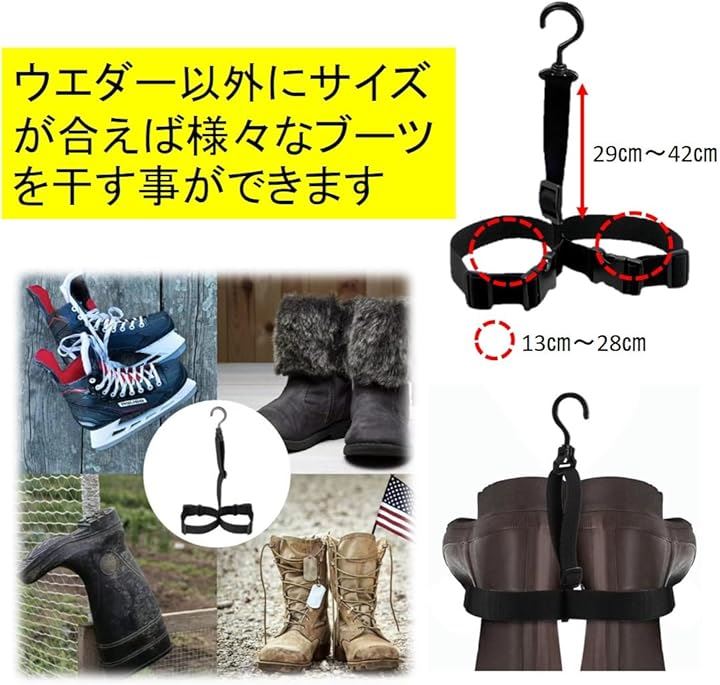 ウェーダー フック ハンガー 2個セット 長靴 ブーツ 釣り 調整可 アウトドア 速乾 胴長 干す 乾燥 乾かす 収納 簡単 調節 靴用