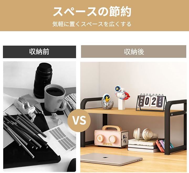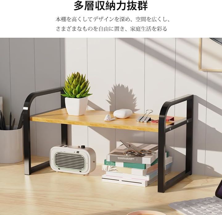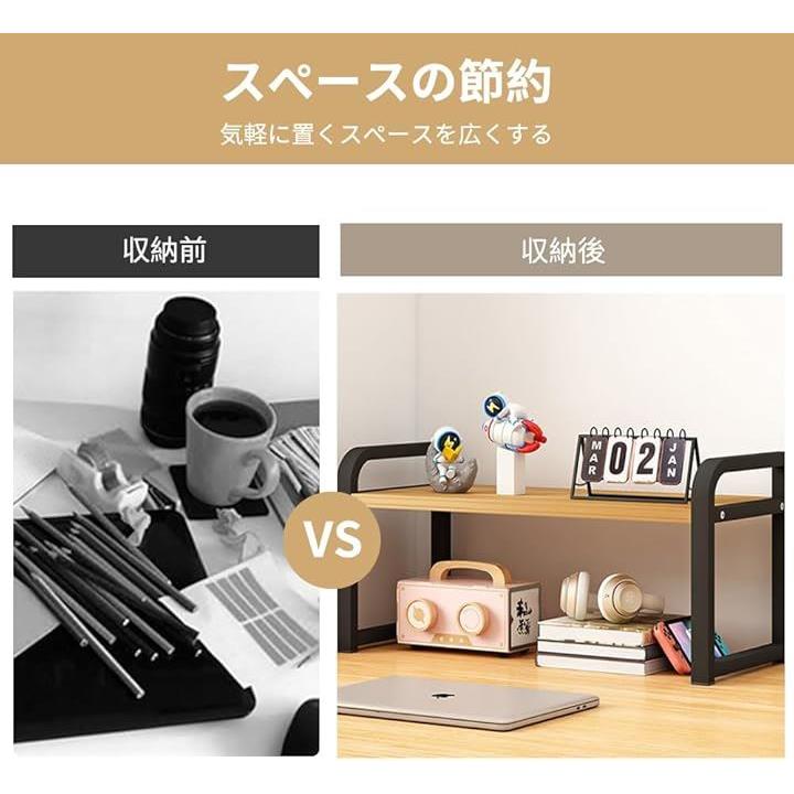 卓上 本棚 ラック デスク収納 棚板高さ調節可 2段 机上台 キッチン収納 調味料ラック ノート パソコン台