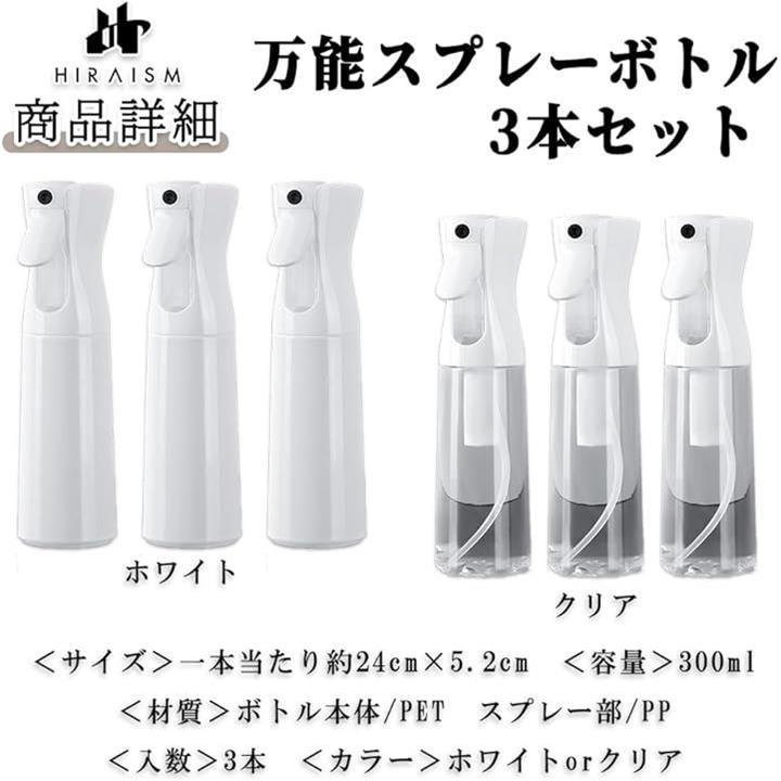 スプレーボトル 霧吹き 園芸用 清掃用 消毒用アルコール対応 300ml 3本セット