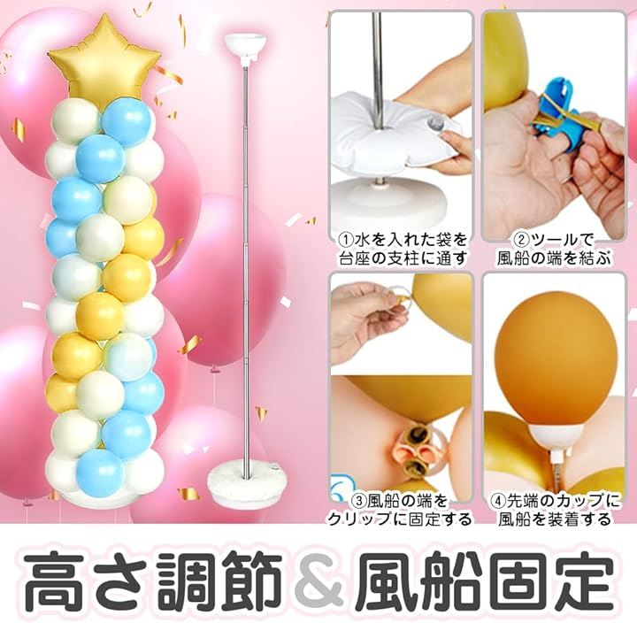 バルーンスタンドキット 2セット 伸縮式 高さ調整 風船装飾 パーティー イベント 開店祝い