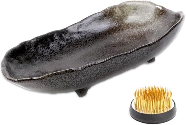 生け花 インテリアボウル 花器 水盤 陶器 楕円形 船型 剣山付き