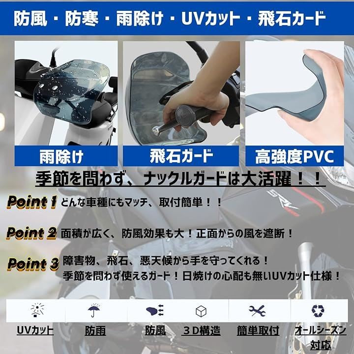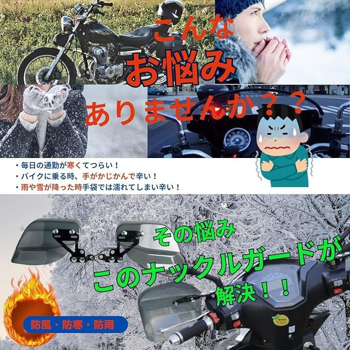 ナックルガード 汎用 バイク スクーター ハンドルガード バイザー 防風 雨除け 防寒 飛石避け