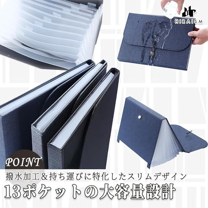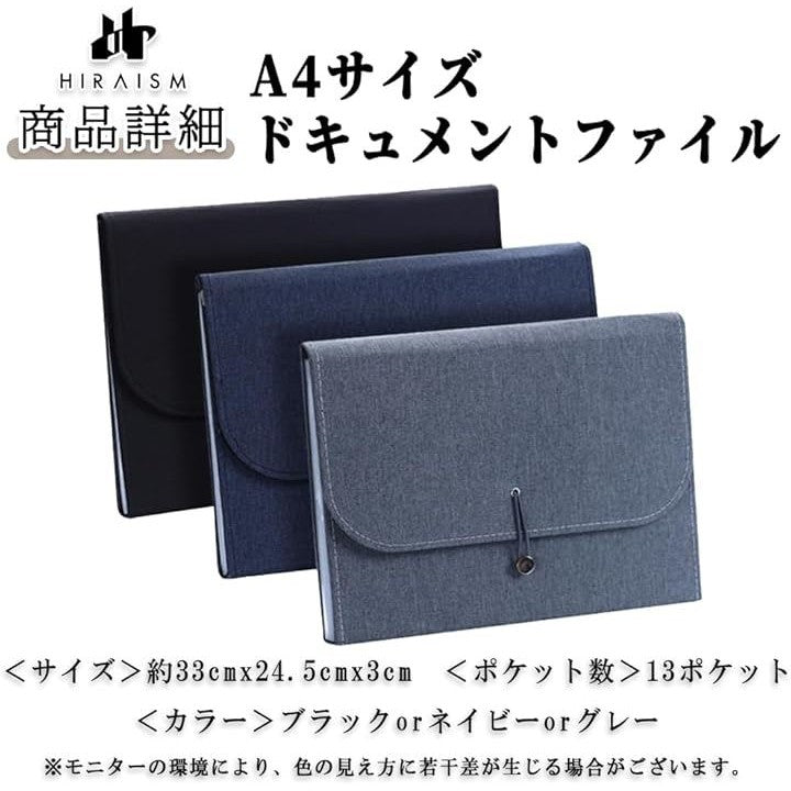 ドキュメントファイル A4 書類ケース 布張り おしゃれ 13ポケット