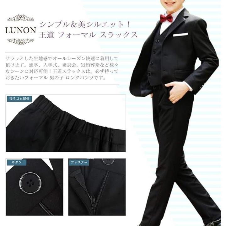 ルノン 男の子フォーマルズボン 子供スーツ スラックス キッズ ジュニア パンツ キッズフォーマル 入学式 卒業式 結婚式 ピアノ発表会 正装 黒 170