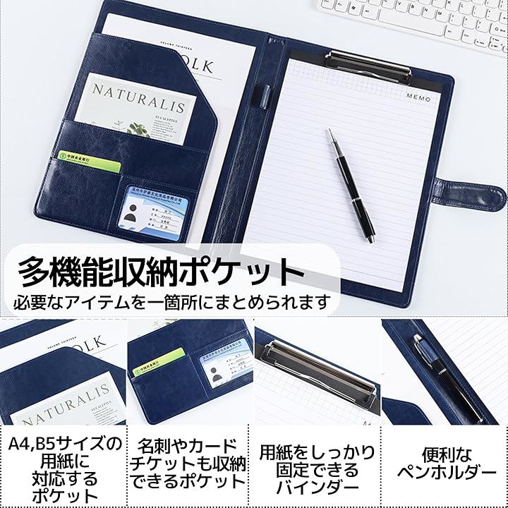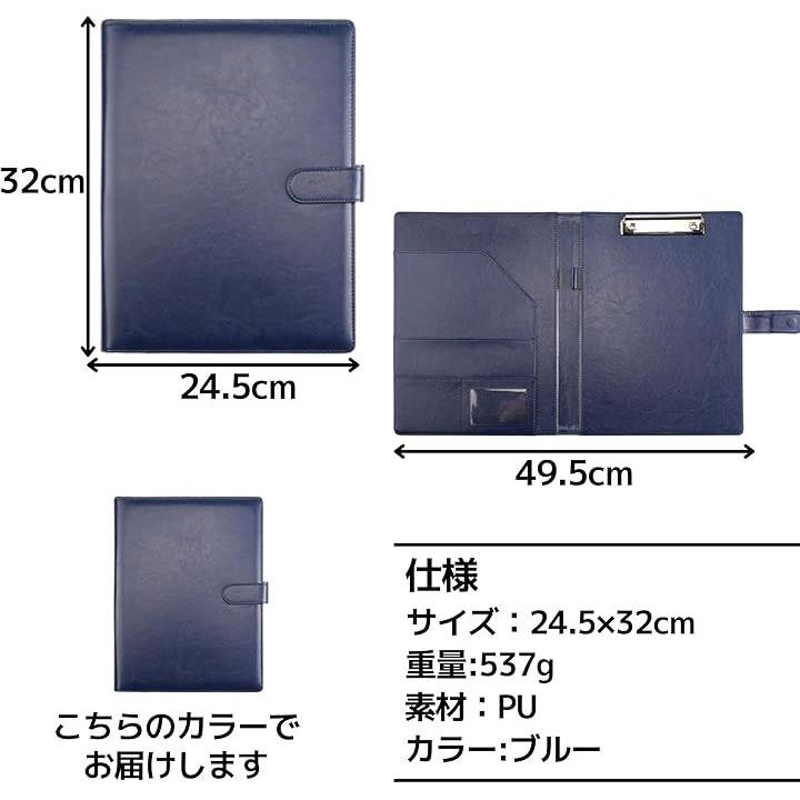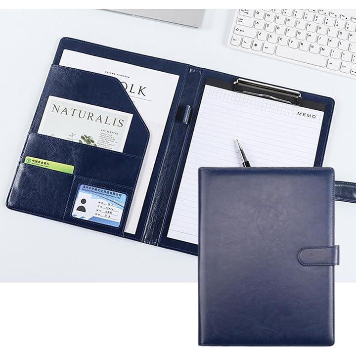 クリップボード バインダー クリップファイル A4 2つ折り 書類 フォルダー PUレザー ペンホルダー付 オフィス用品 事務用品 ブルー