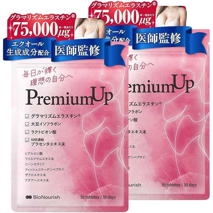 「医師監修」 PuremiumUP 「グラマリズムエラスチン®75,000μgxエクオール生成成分を贅沢配合」 サプリ 大豆イソフラボン コラーゲン ヒアルロン酸 国内製造 (2袋(60日分)) |