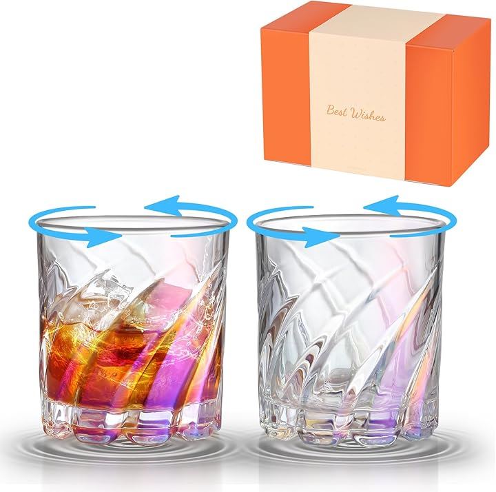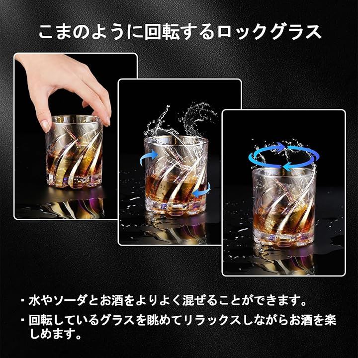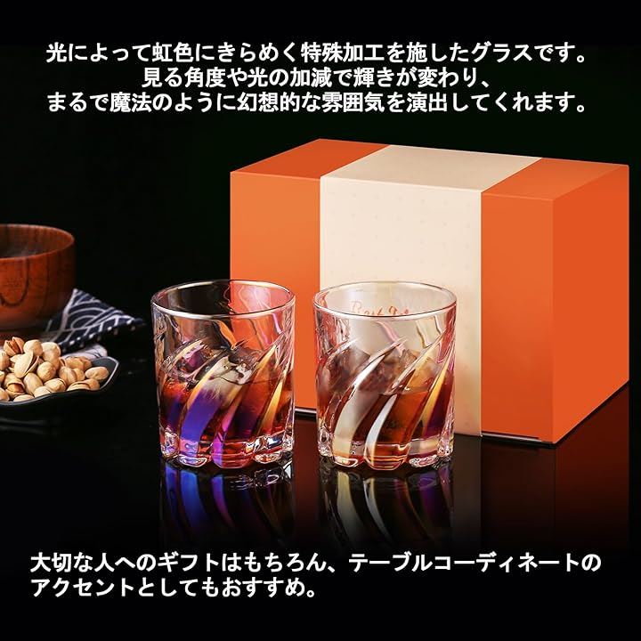 ロックグラス ペアグラス スピングラス 回転 虹色 男性 誕生日プレゼント ウィスキーグラス 父の日 退職祝い 昇進祝い 新築祝い 送別品 焼酎グラス 化粧箱入り 285ml